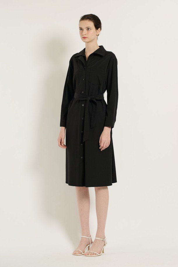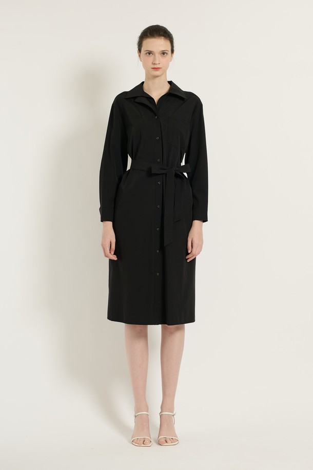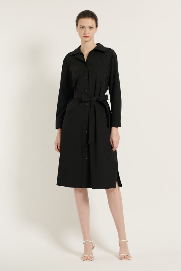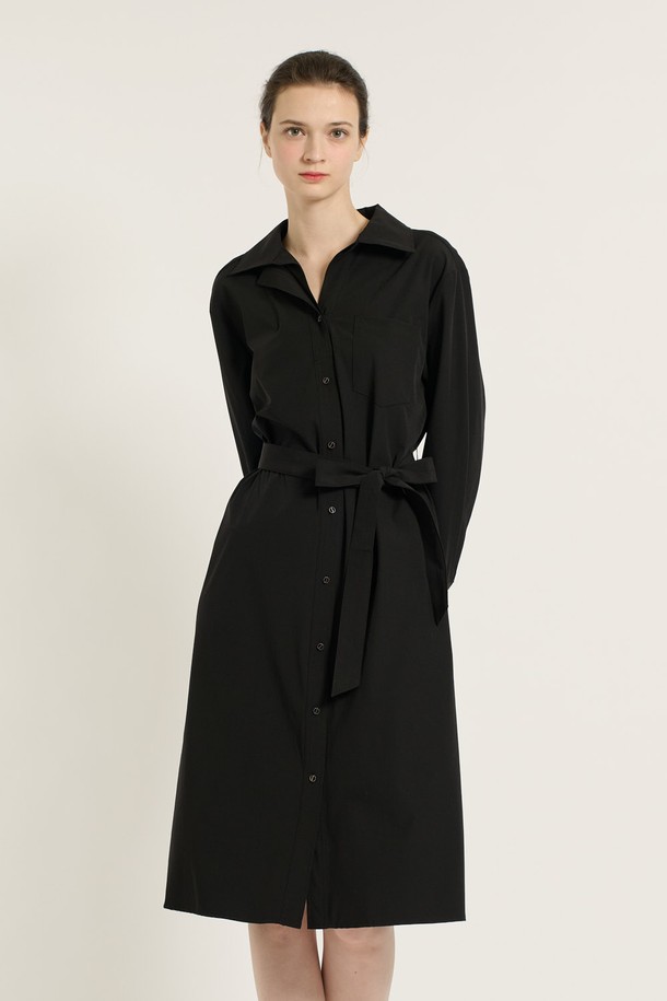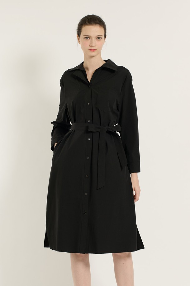 [25SU] 이중카라 벨티드 원피스 - BLACK B5C7G67199