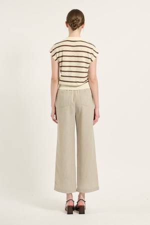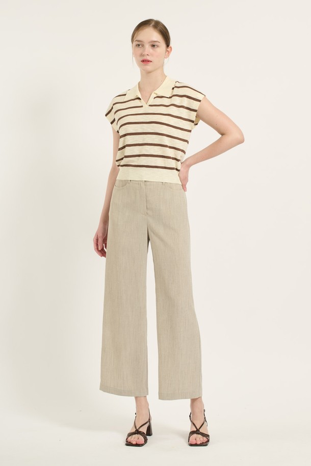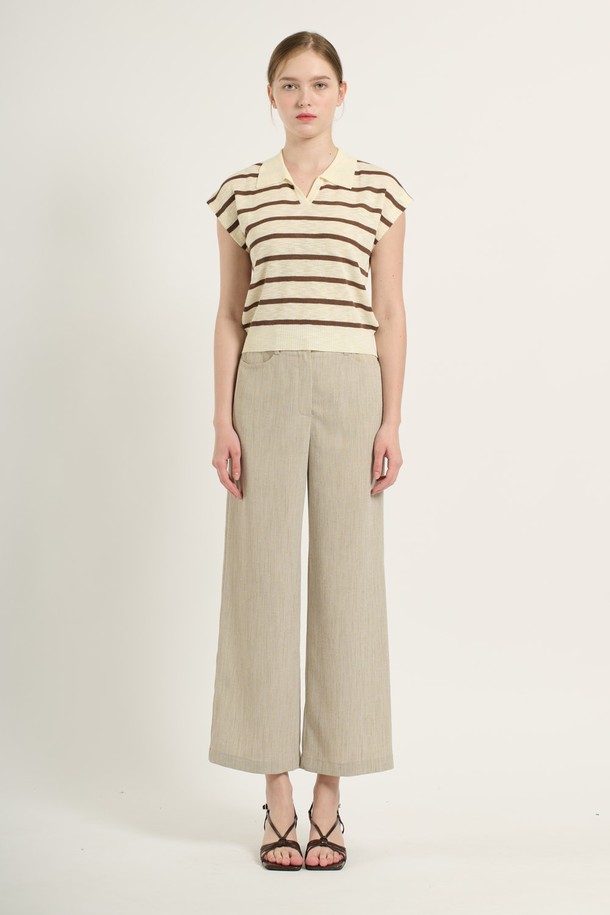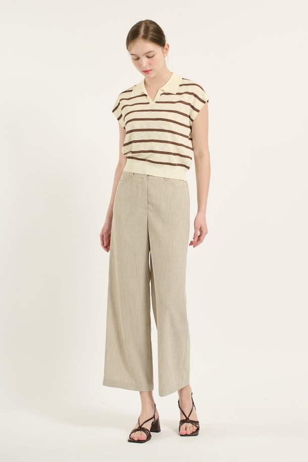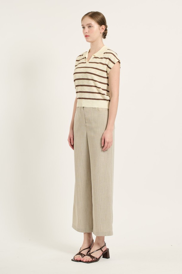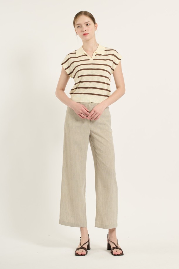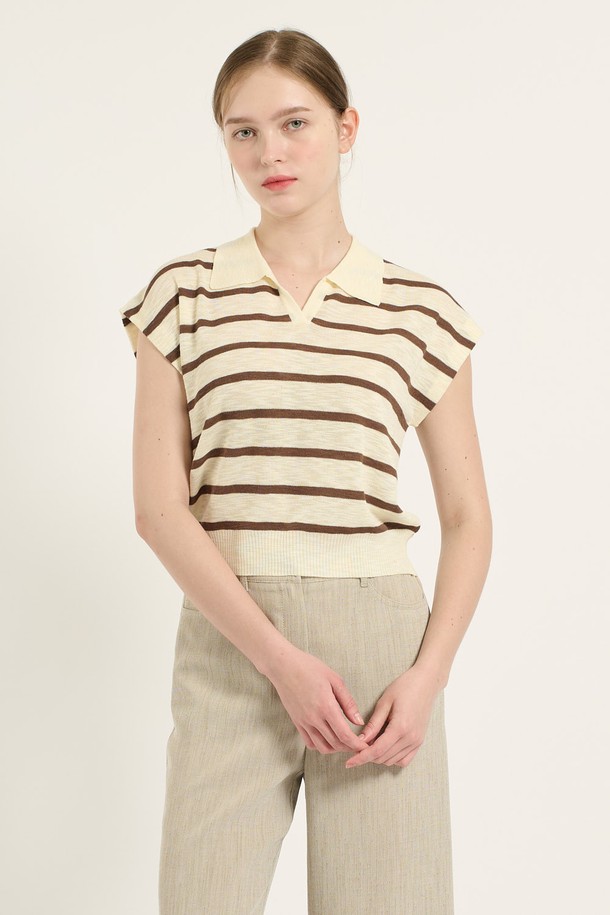 [25SU] 오픈카라 스트라이프 니트 - BROWN B5B6K49174