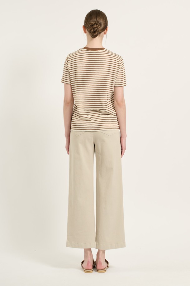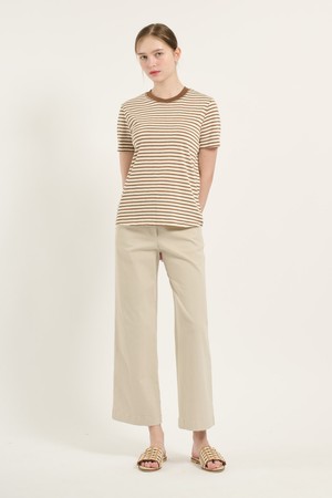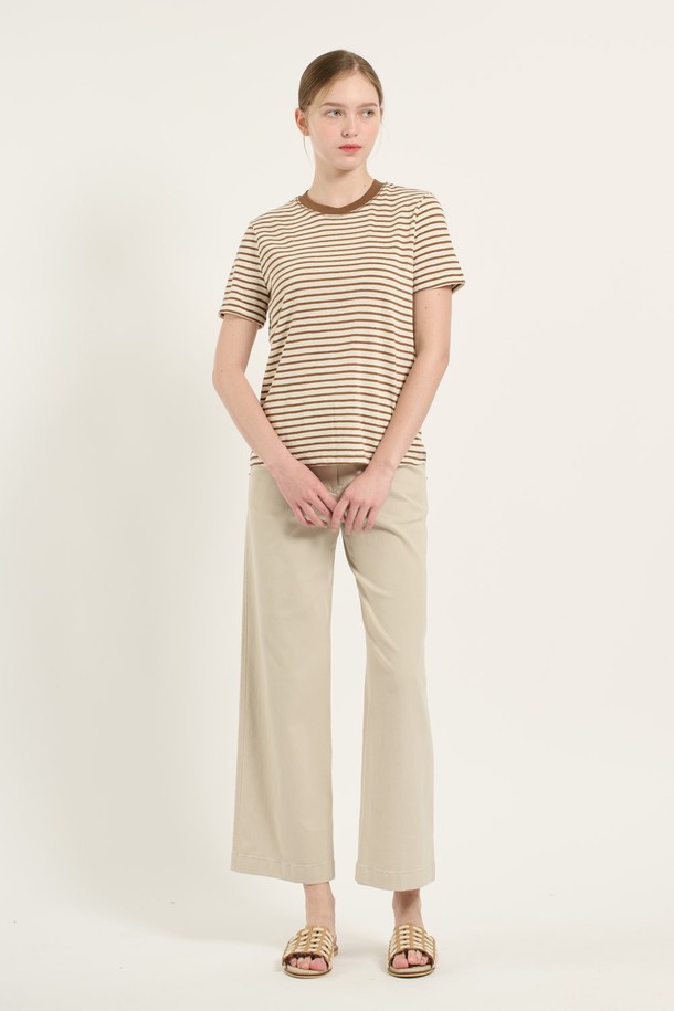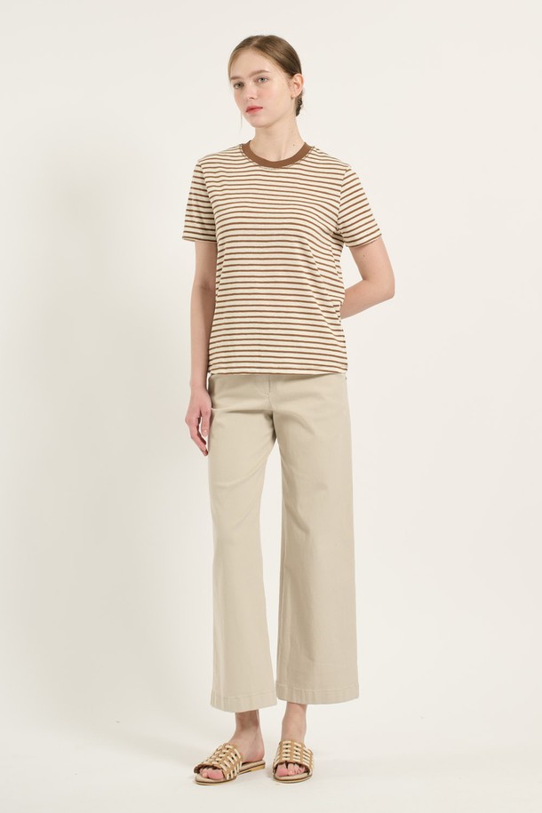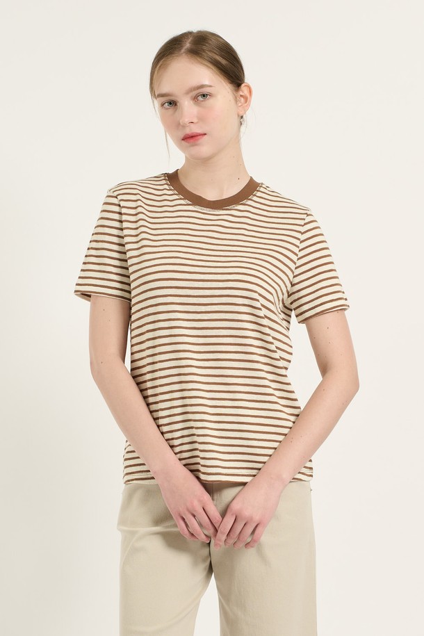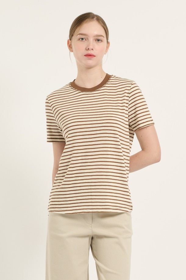 [25SU] 면혼방 스트라이프 티셔츠 - BROWN B5B6X44274