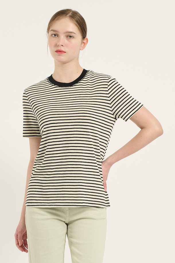 [25SU] 면혼방 스트라이프 티셔츠 - DARK NAVY B5B6X44256