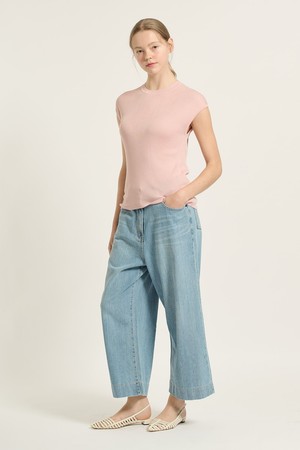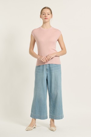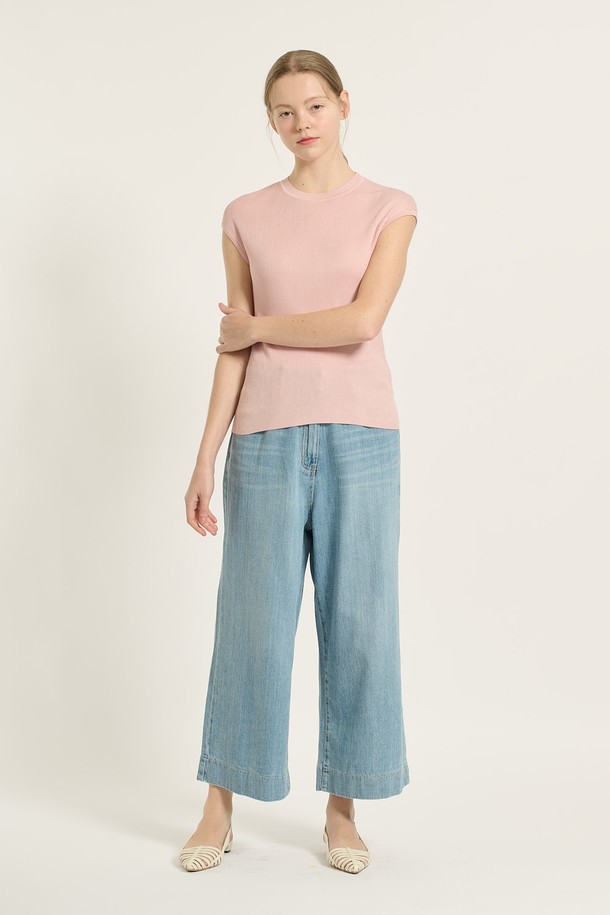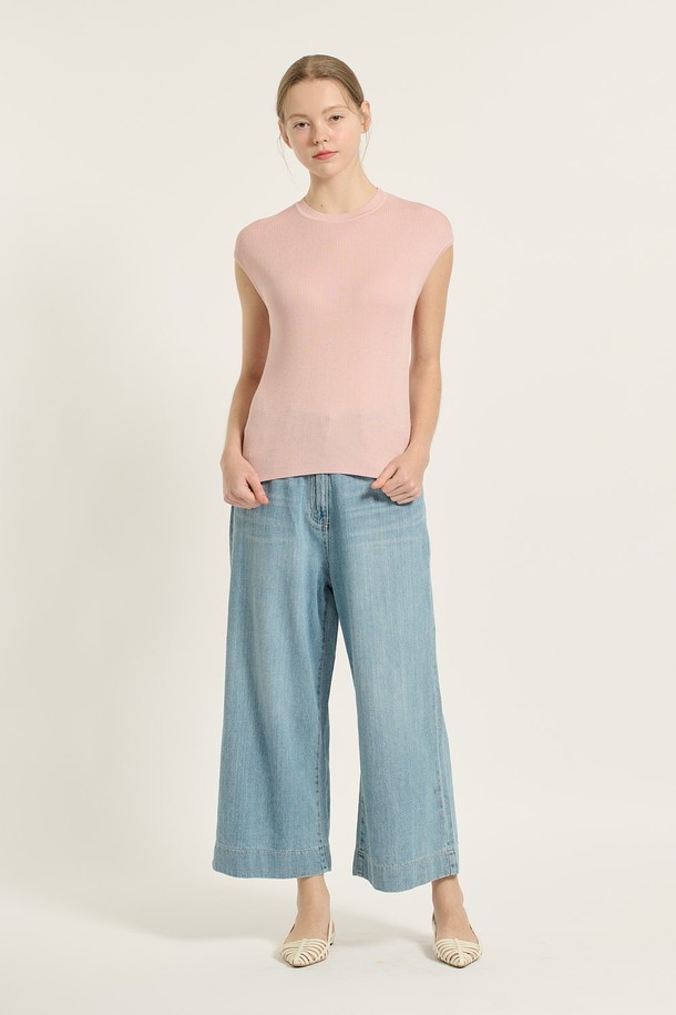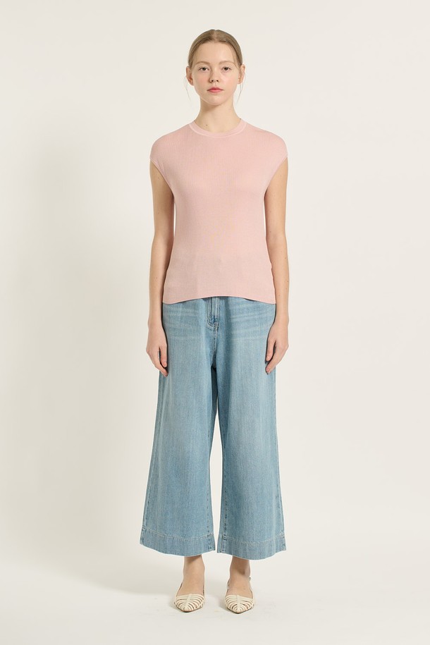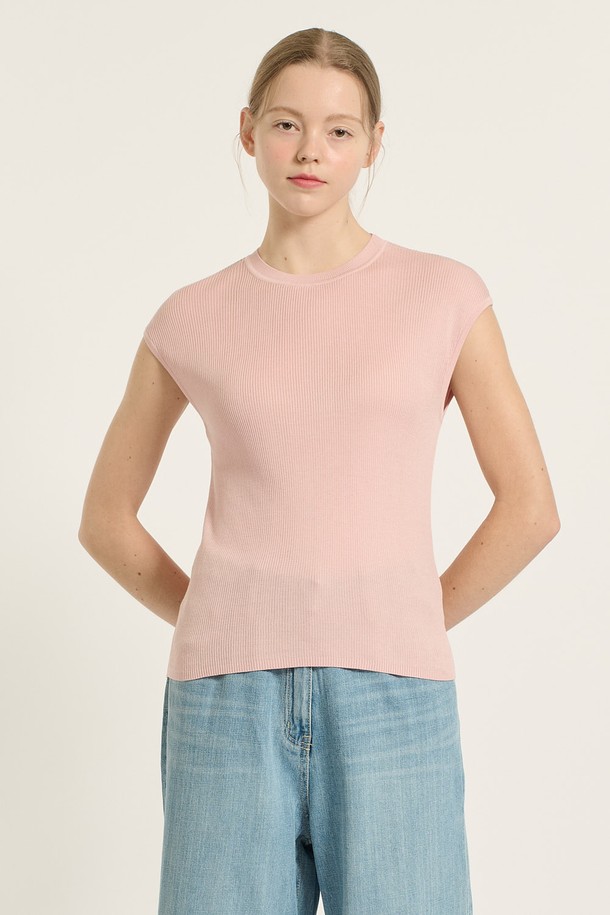 [25FA] 립 슬리브리스 니트 탑 - PINK B5F7G49022