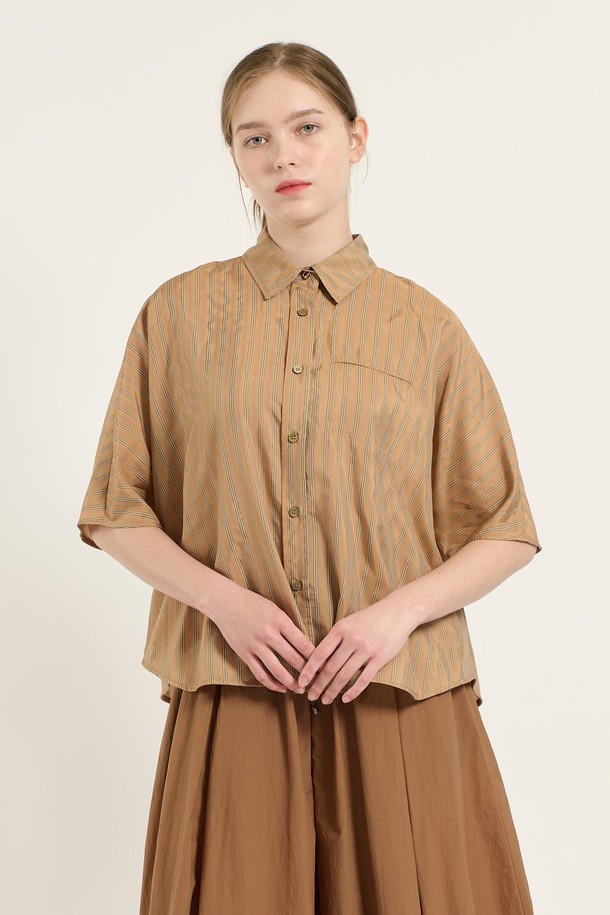[25FA] 오버핏 스트라이프 셔츠 - DARK BEIGE B5C7B40173