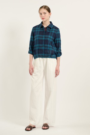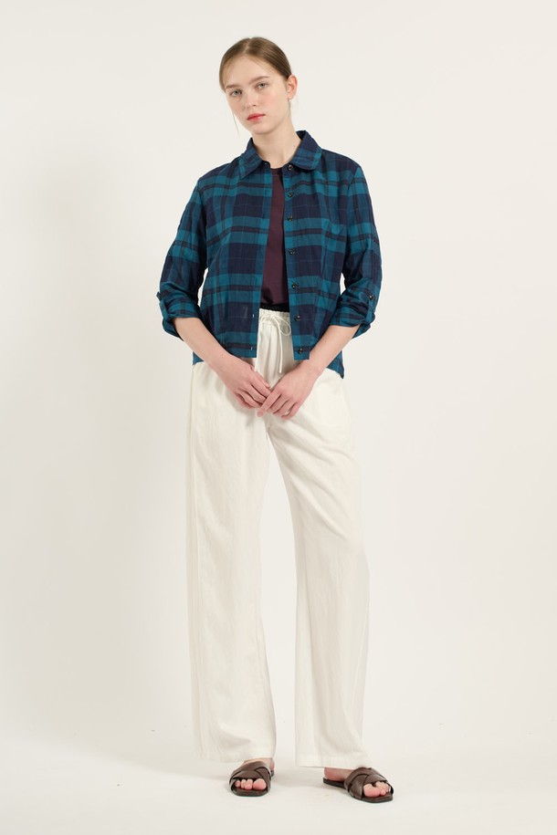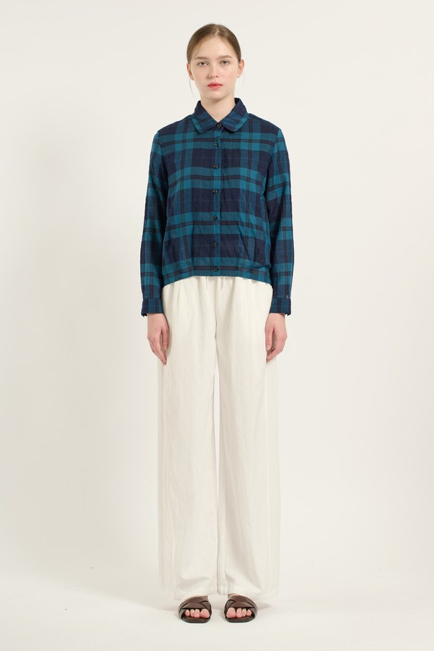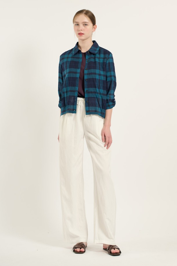 [25FA] 밑단 터크 밴드 체크셔츠 - DARK BLUE B5C7B40554