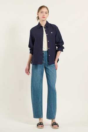 [25FA] 드랍숄더 린넨 셔츠 - NAVY B5C7B40755