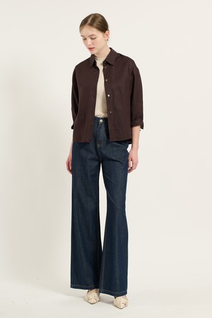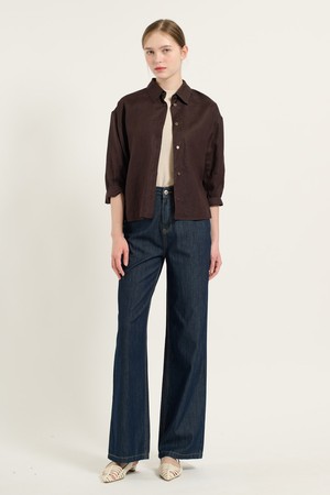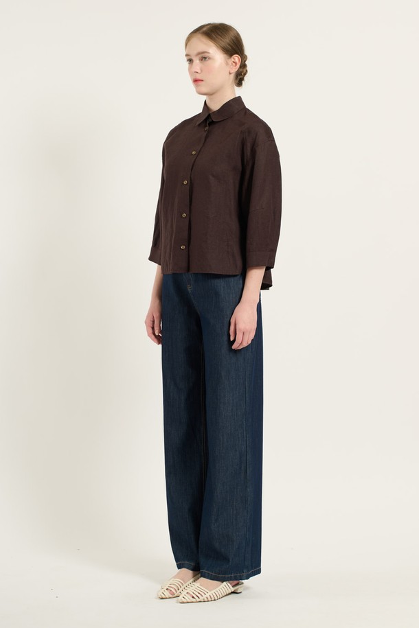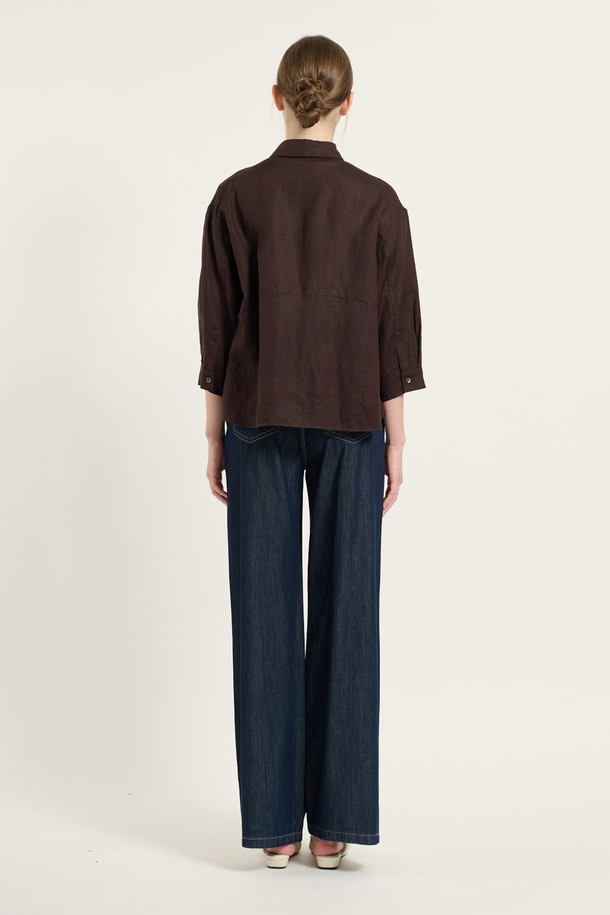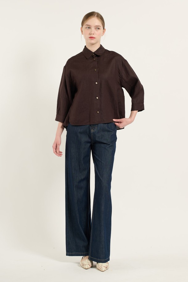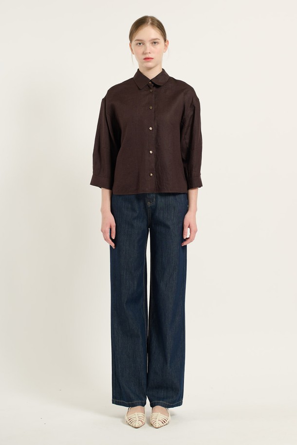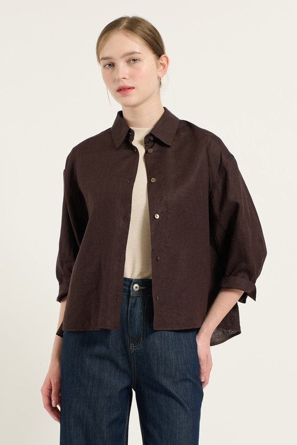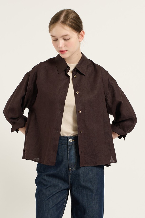 [25FA] 셔츠카라 린넨 블라우스 - BROWN B5C7B41974