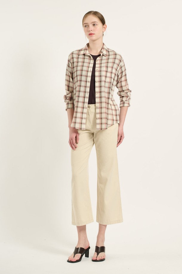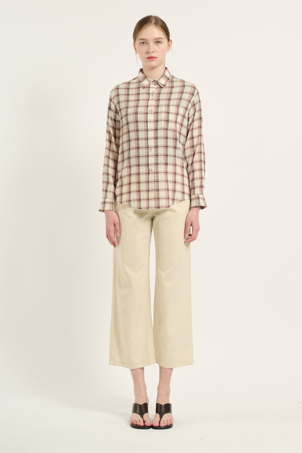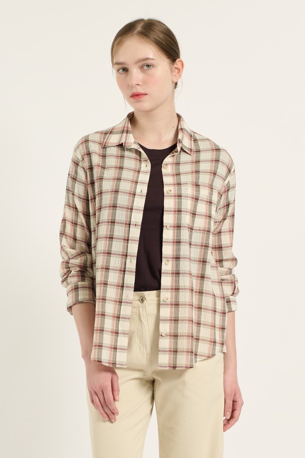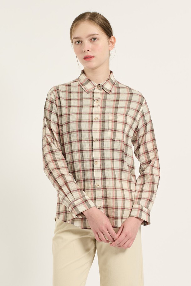 [25FA] 체크 패턴 셔츠형 블라우스 - DARK RED B5C7B47725