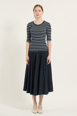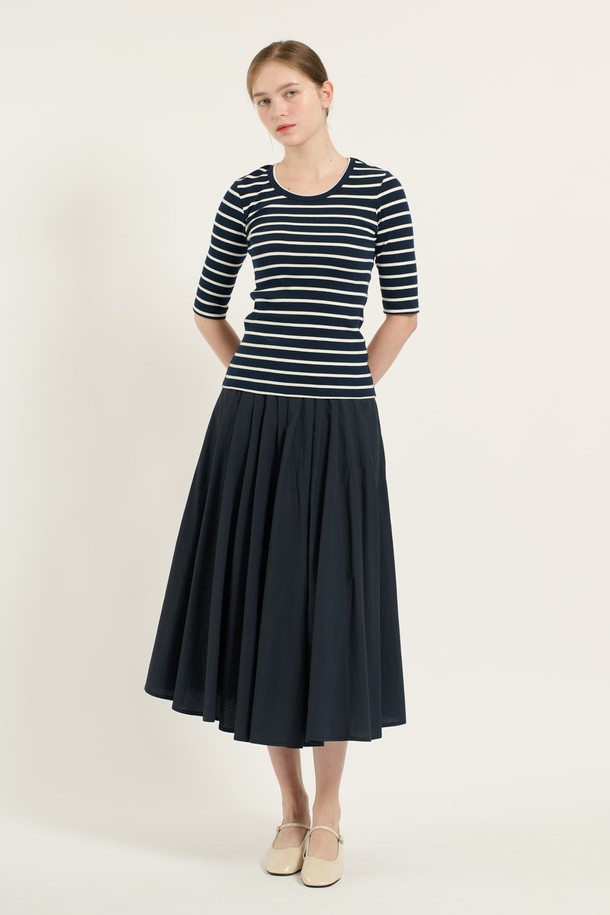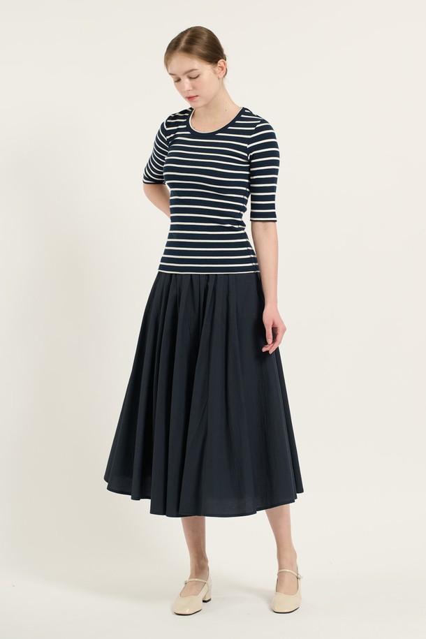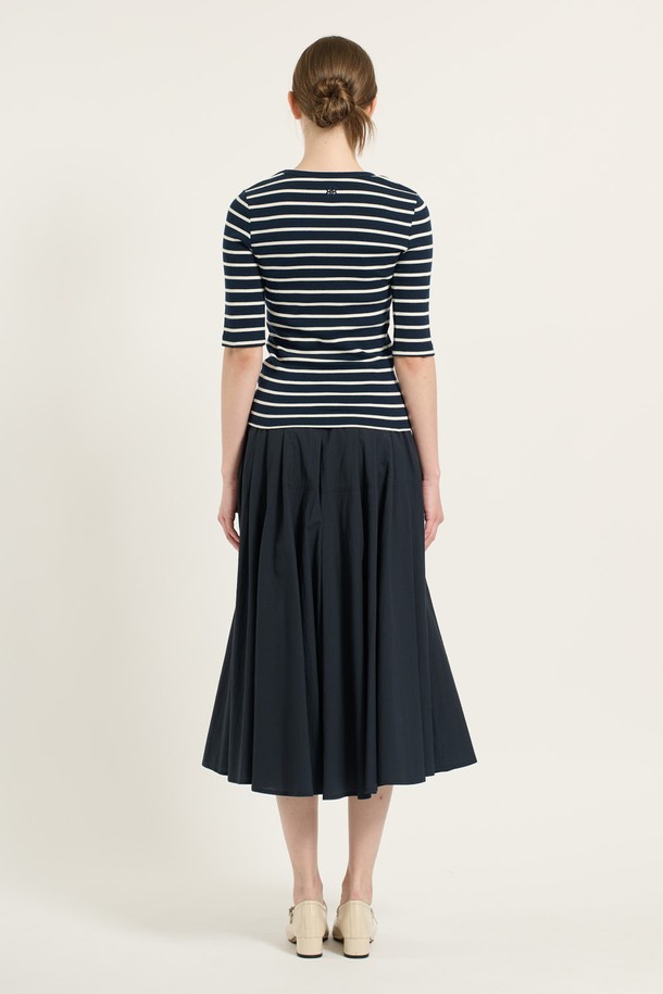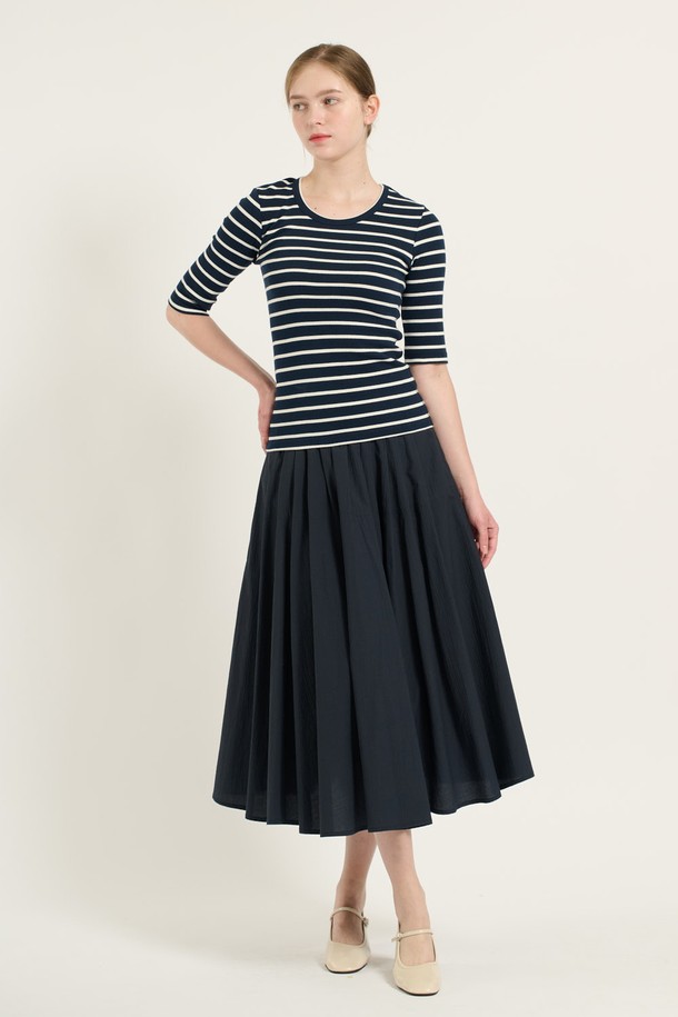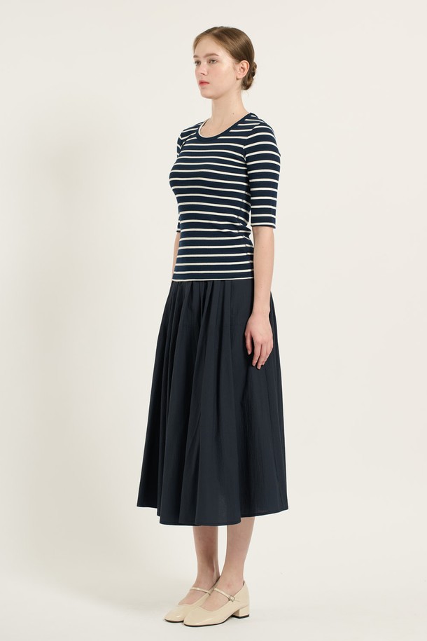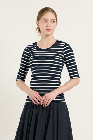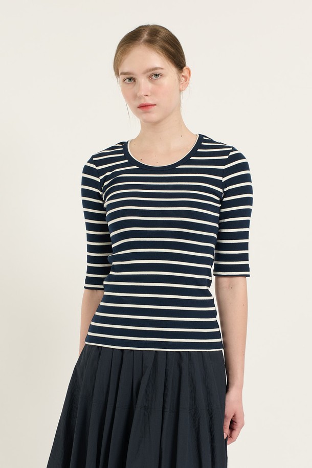 [25FA] 오부소매 슬림핏 티셔츠 - NAVY B5C7X40255
