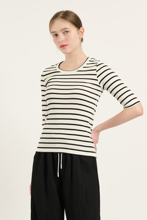 [25FA] 오부소매 슬림핏 티셔츠 - WHITE B5C7X40210