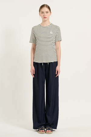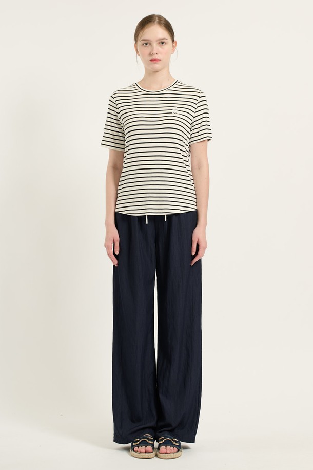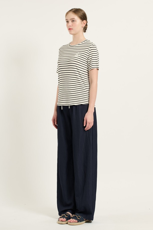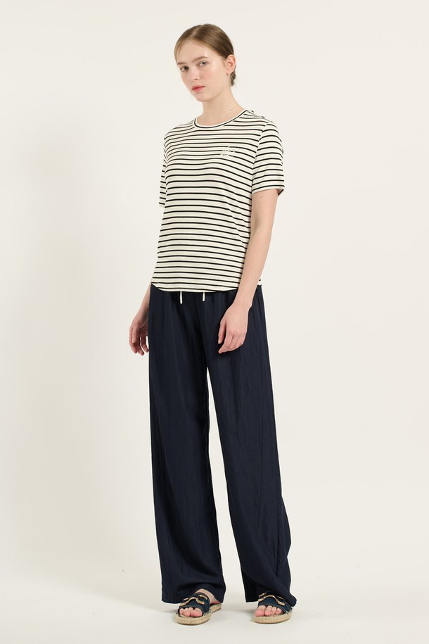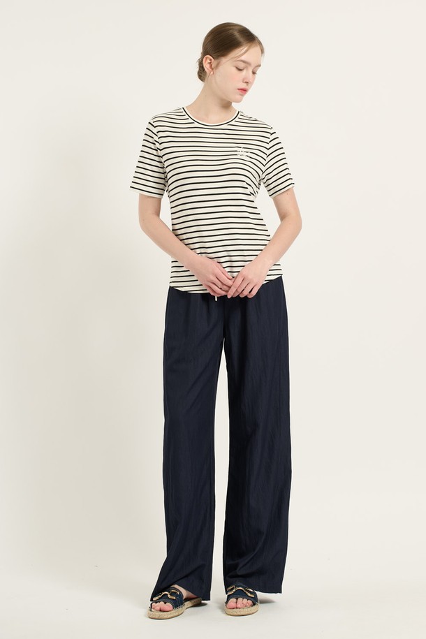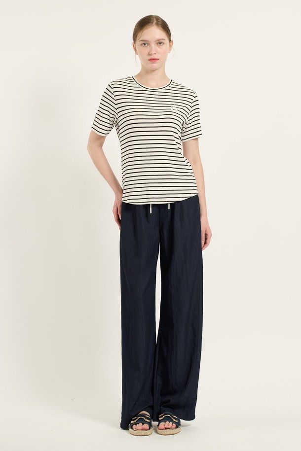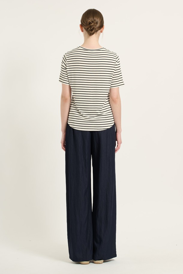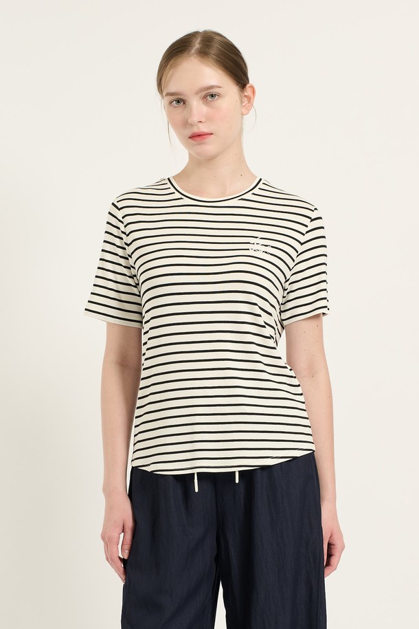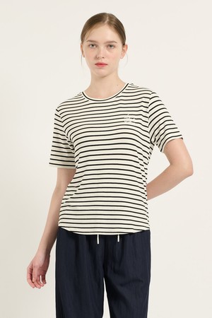 [25FA] 라운드넥 스트라이프 티셔츠 - BLACK B5C7X40399