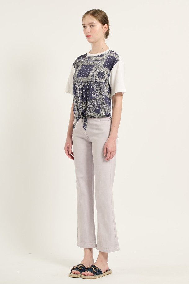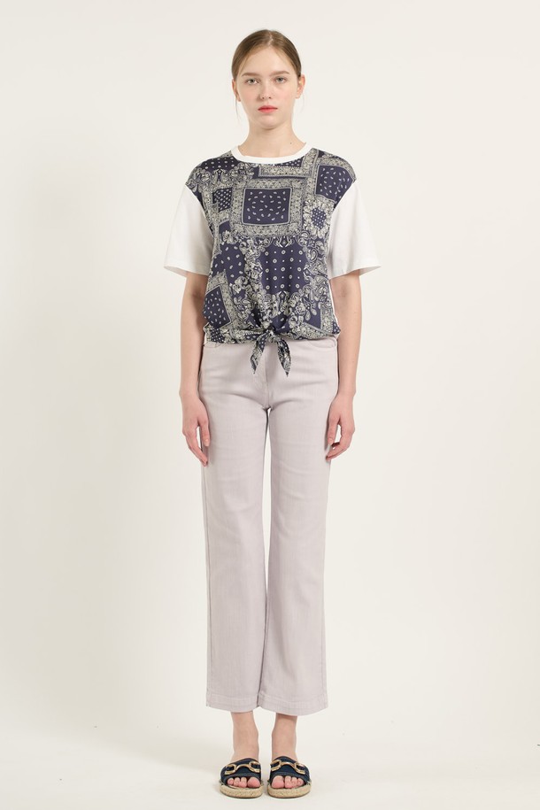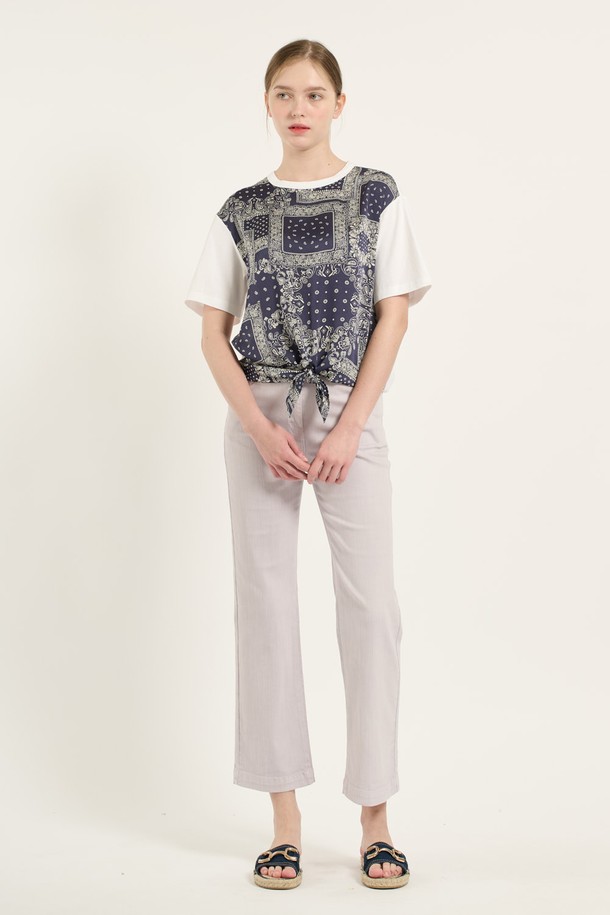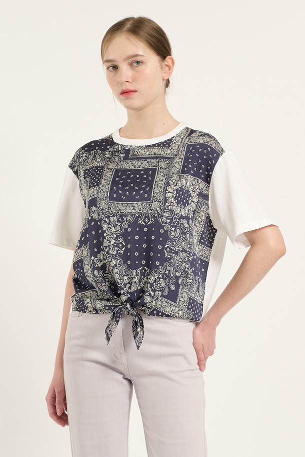 [25FA] 페이즐리 배색 티셔츠 - NAVY B5C7X40755