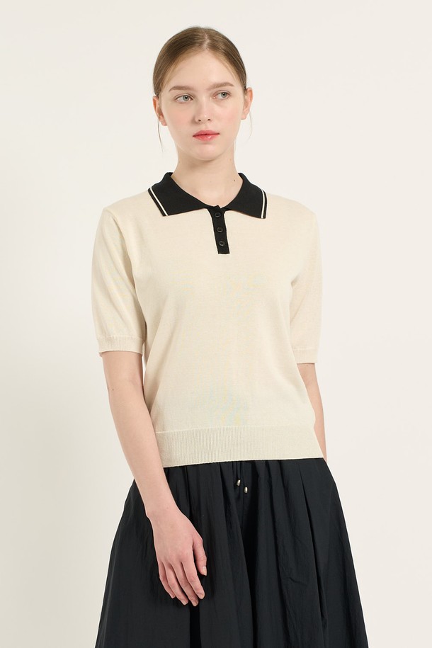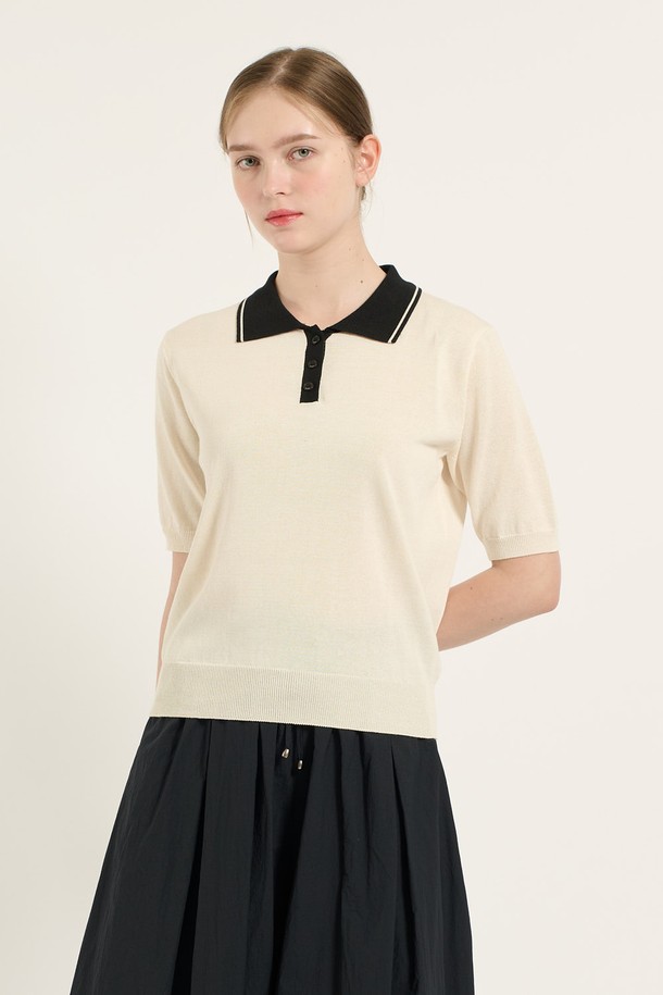 [25FA] 페이퍼 배색 카라 가디건 - IVORY B5C7K40213