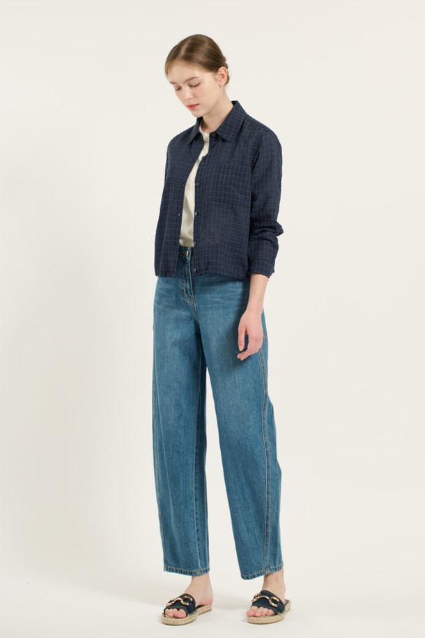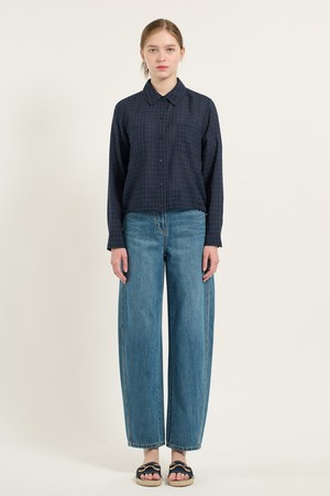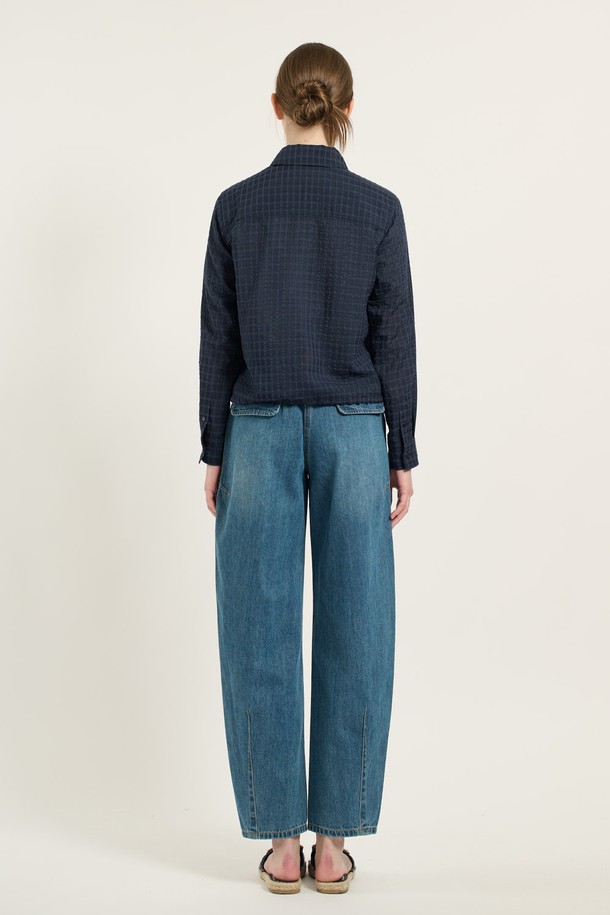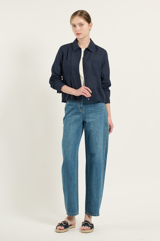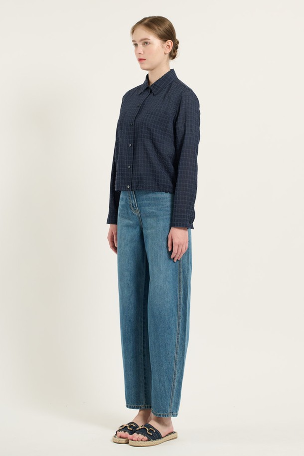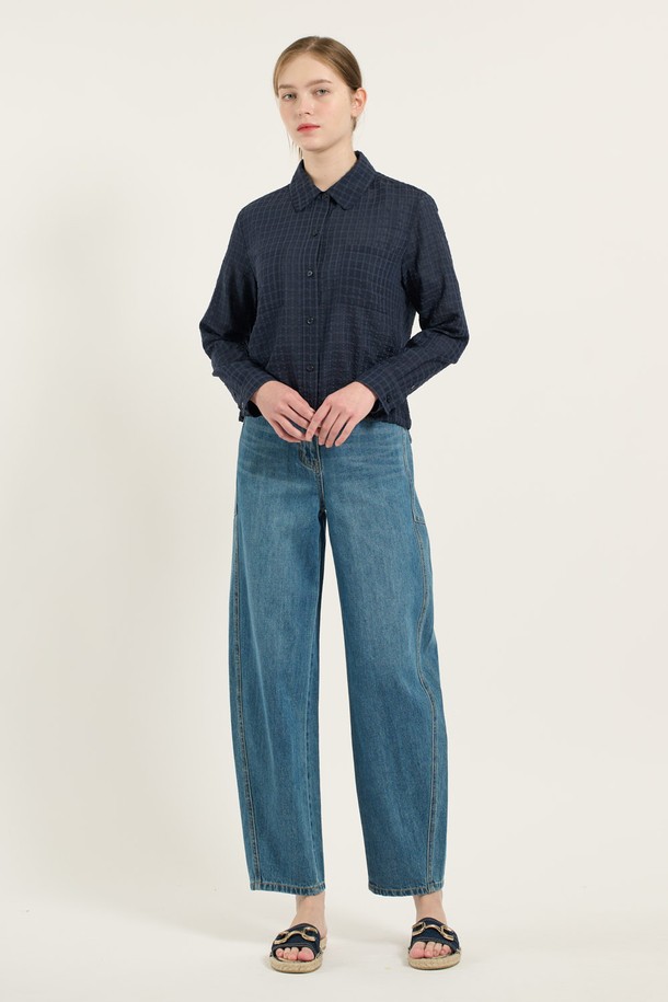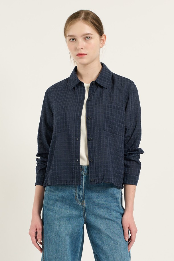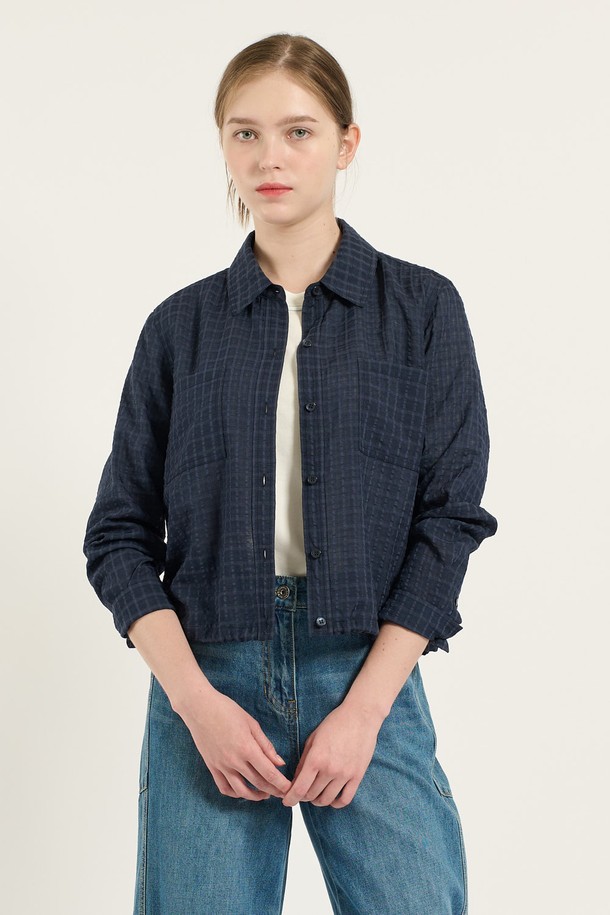 [25FA] 셔츠형 드로우스트링 블라우스 - NAVY B5C8B42355