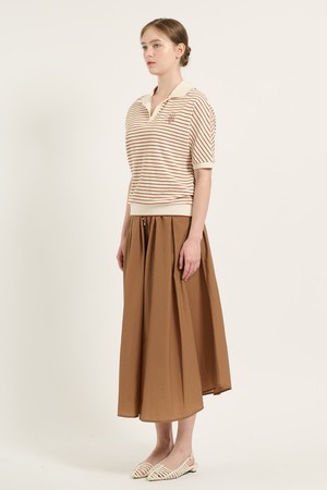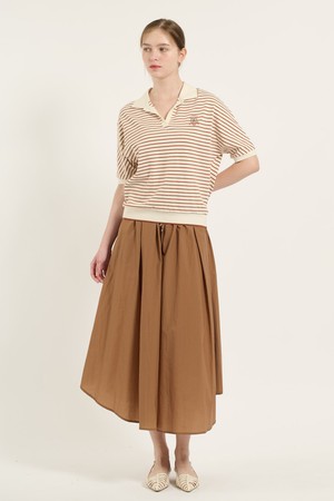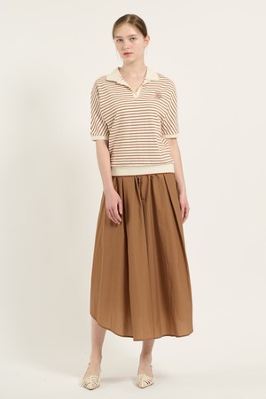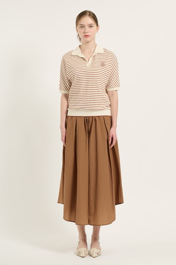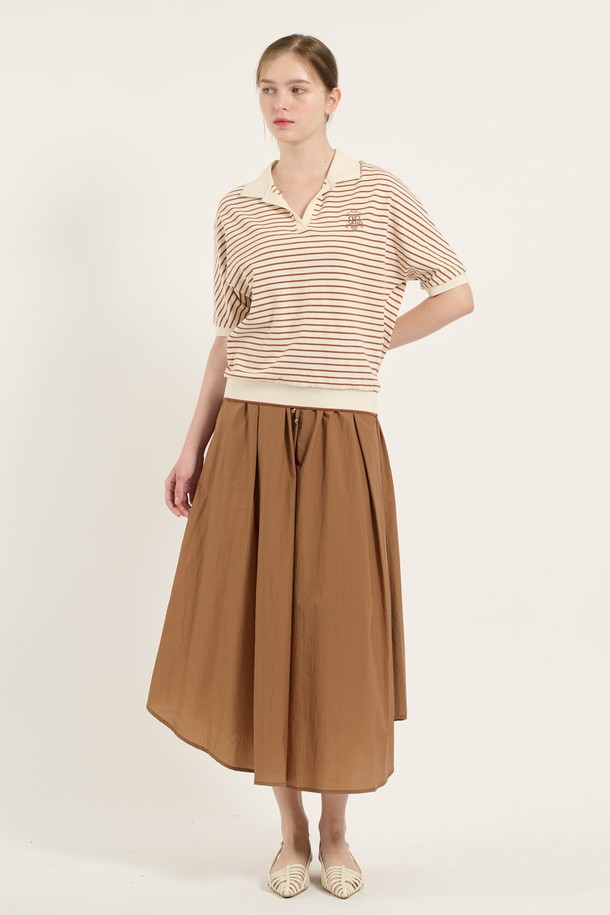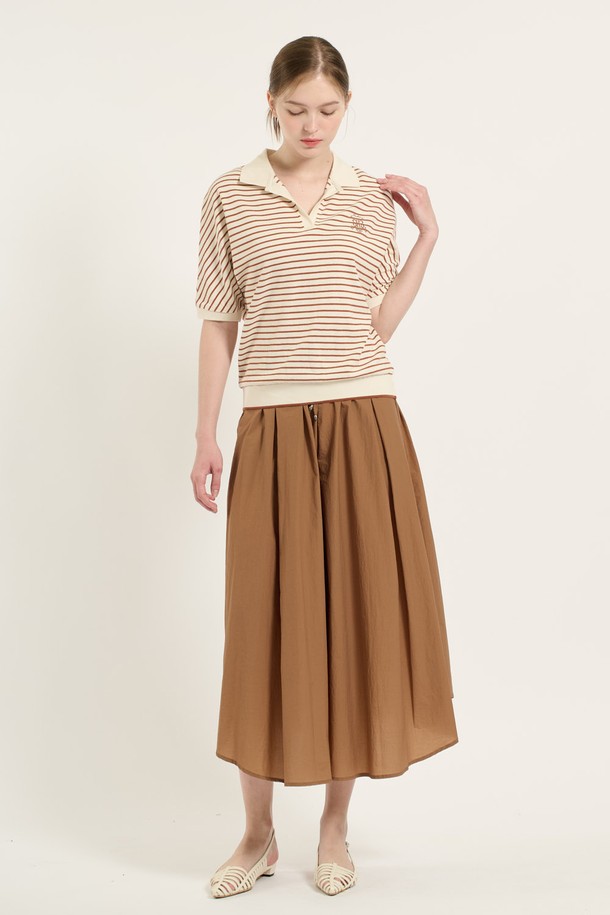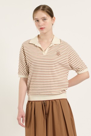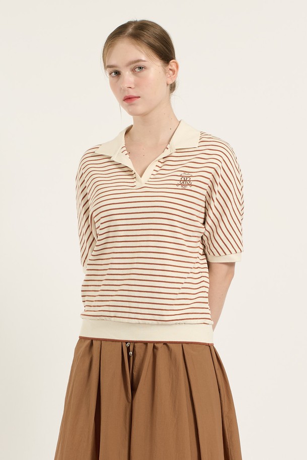 [25FA] 카라형 돌먼 소매 스트라이프 티셔츠 - BRICK B5C7X40127
