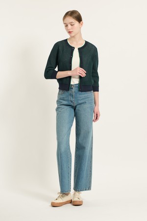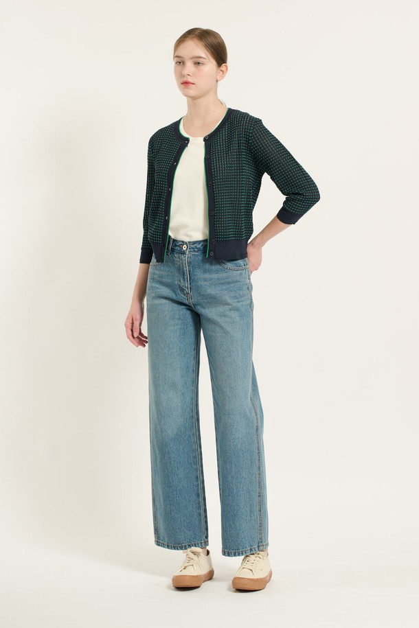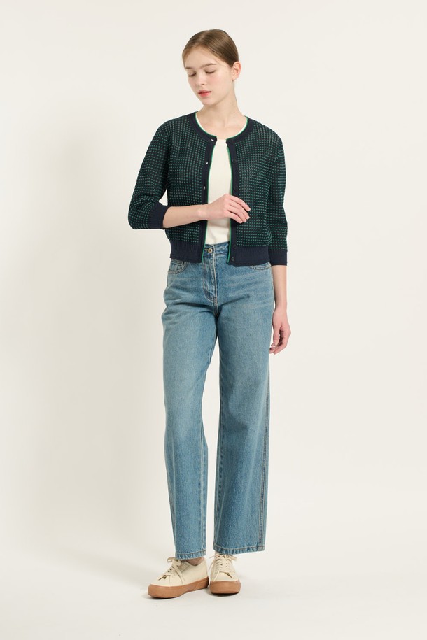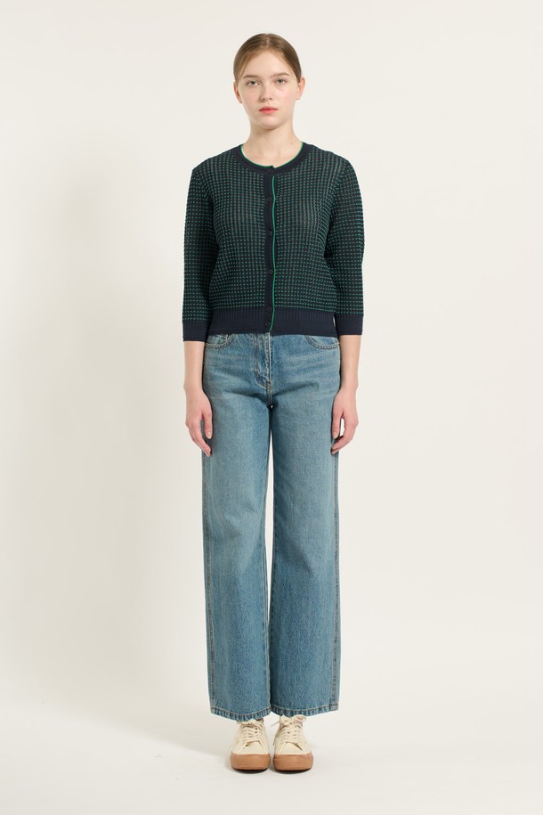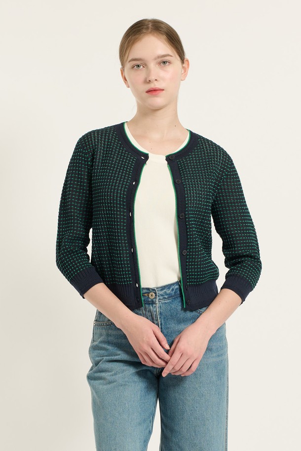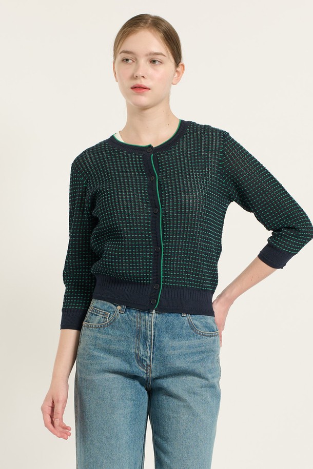 [25FA] 크로셰 립 변형 라운드넥 가디건 - DARK NAVY B5C7K20256