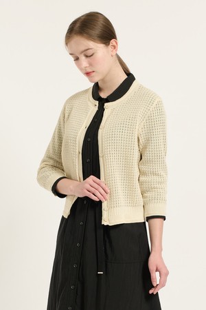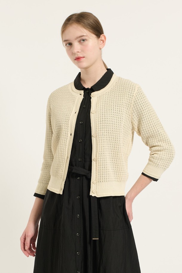 [25FA] 크로셰 립 변형 라운드넥 가디건 - IVORY B5C7K20213