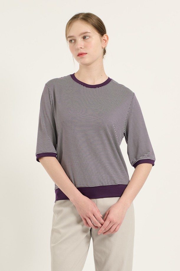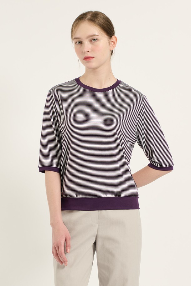 [25SU] 면모달 스트라이프 티셔츠 - PURPLE B5B3X40763