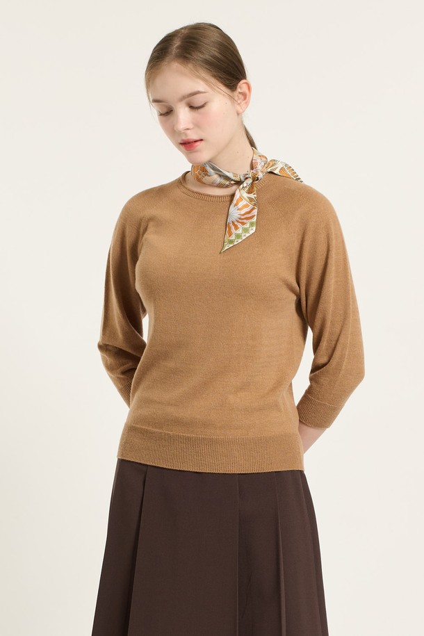 [25FA] 스카프 볼륨 실루엣 라운드넥 풀오버 - CAMEL B5C8K41180