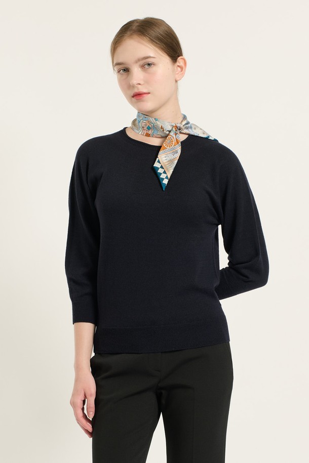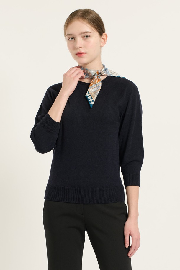 [25FA] 스카프 볼륨 실루엣 라운드넥 풀오버 - DARK NAVY B5C8K41156