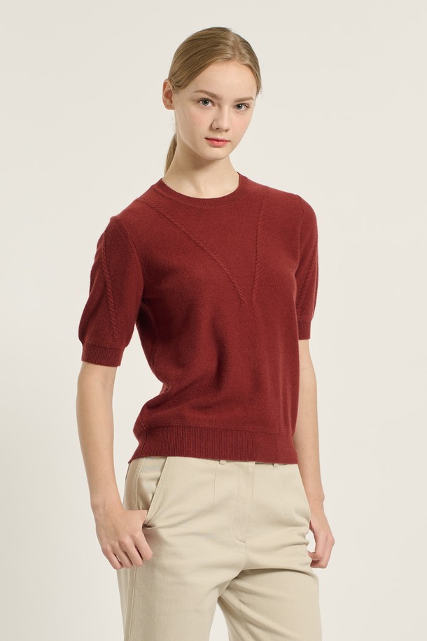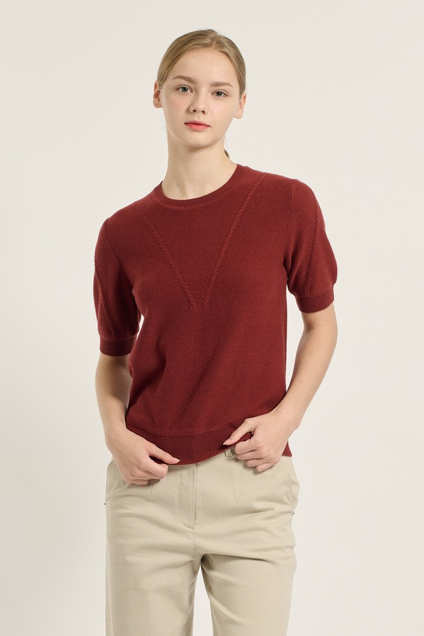 [25FA] 케이블 라인 라운드넥 반팔 풀오버 - BRICK B5C8K31127