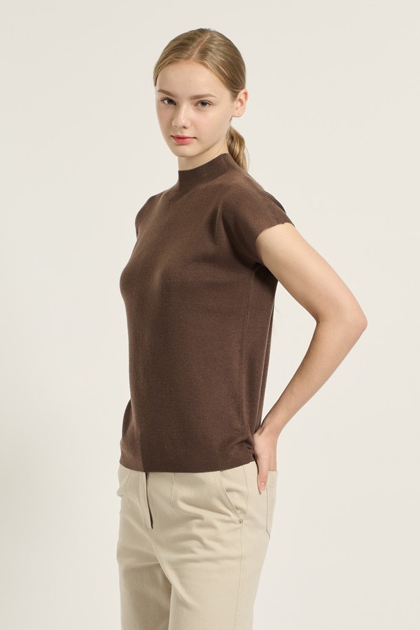 [25WT] 캡 슬리브 하프넥 니트 풀오버 - BROWN B5D9K47774