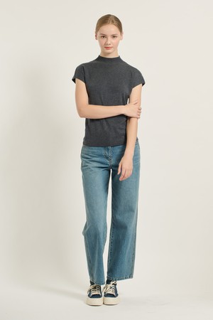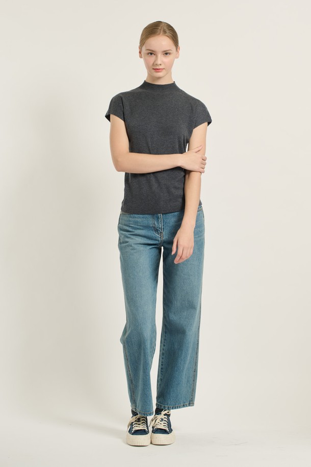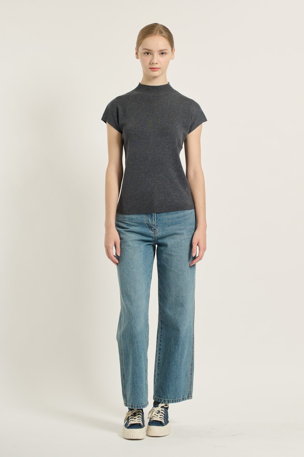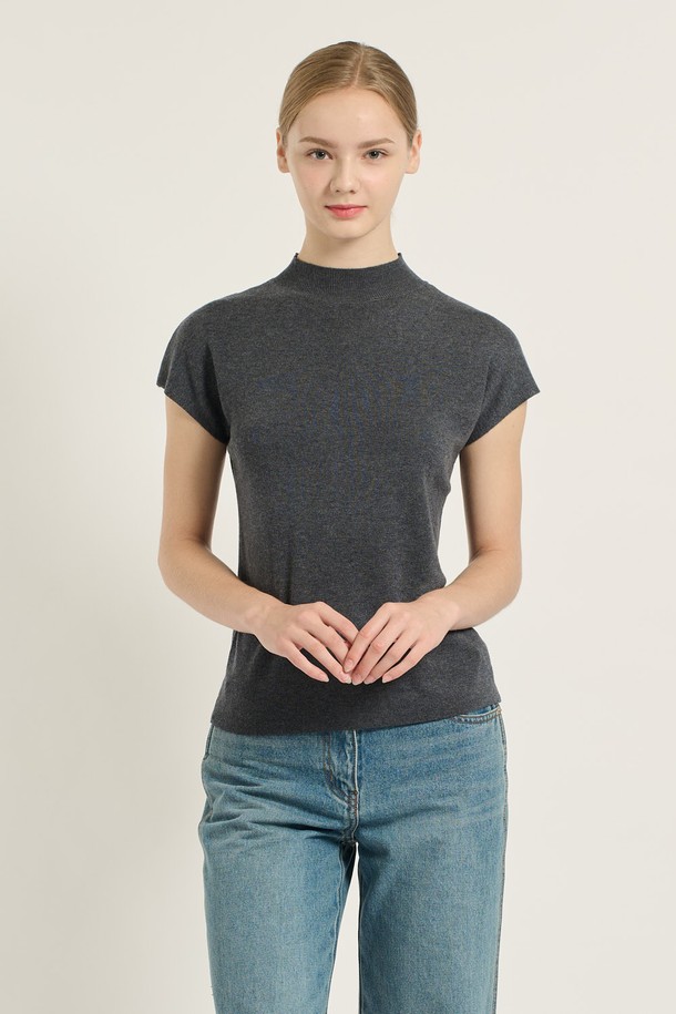 [25WT] 캡 슬리브 하프넥 니트 풀오버 - DARK GRAY B5D9K47717