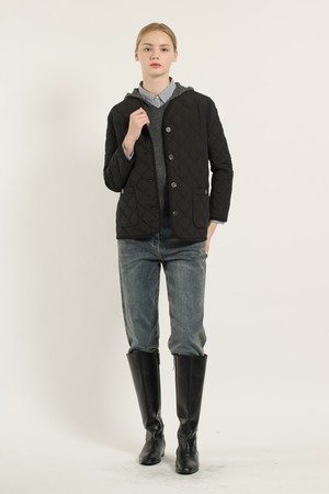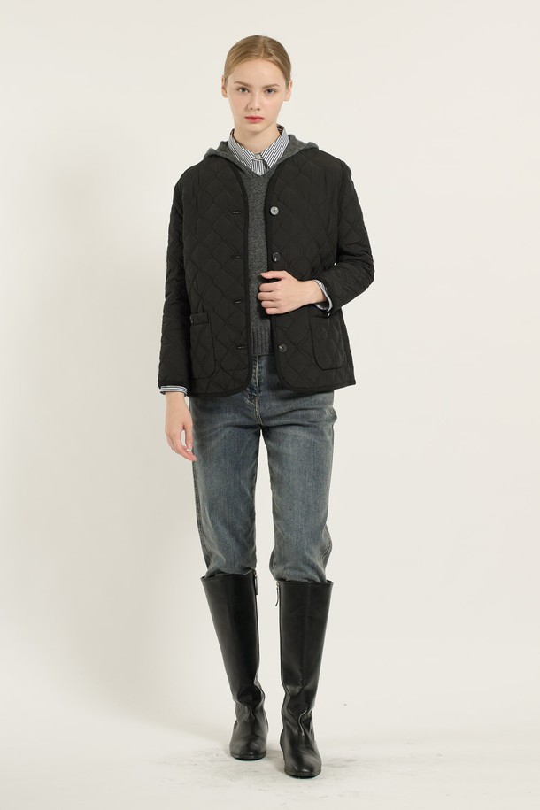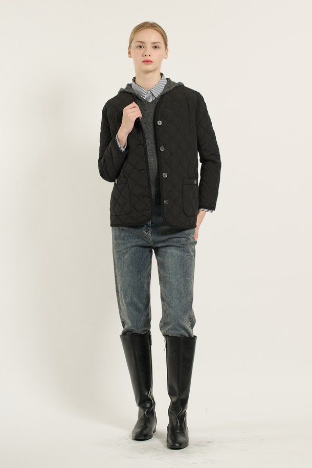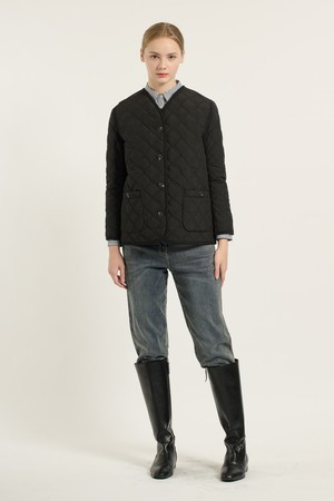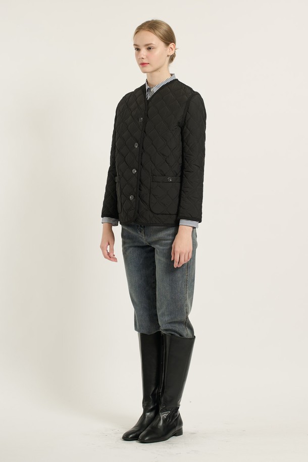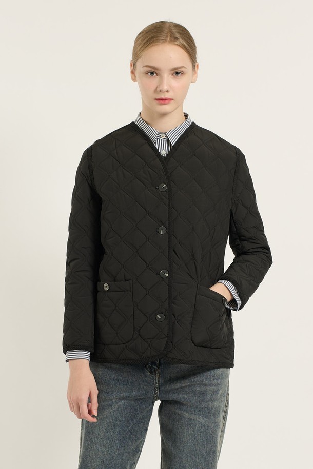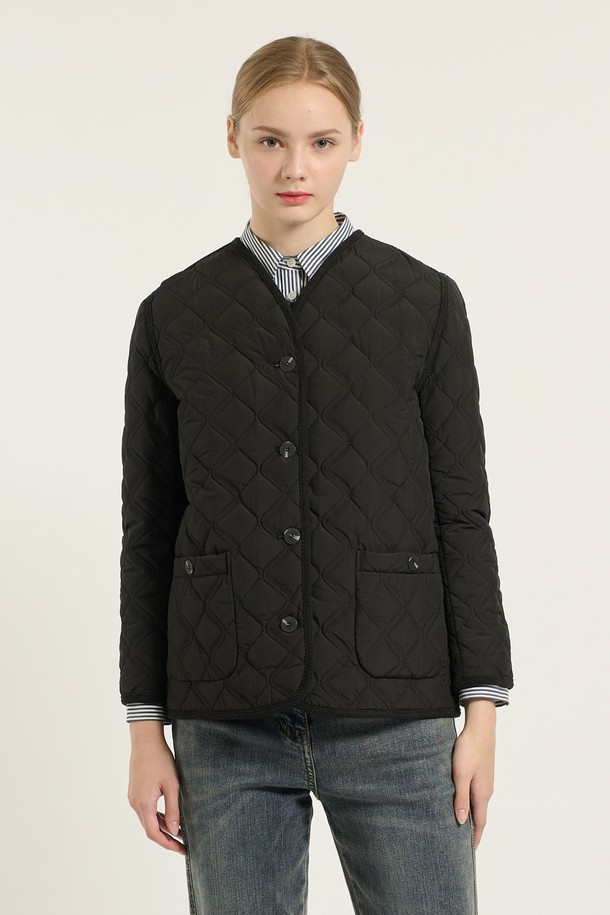 [25WT] 브이넥 바인딩 퀼팅 - BLACK B5D9I87699