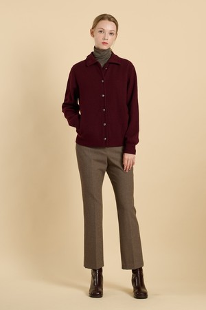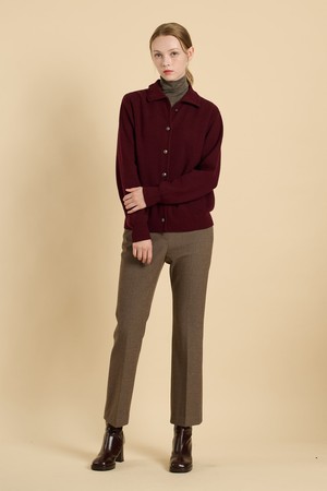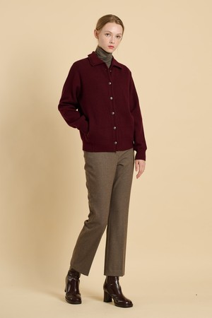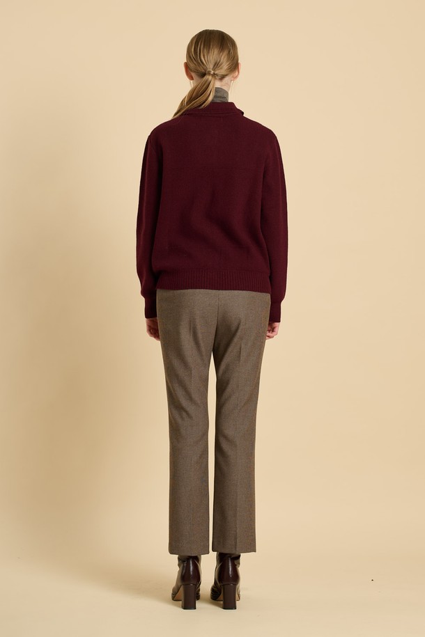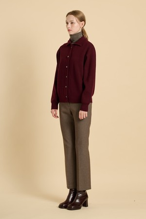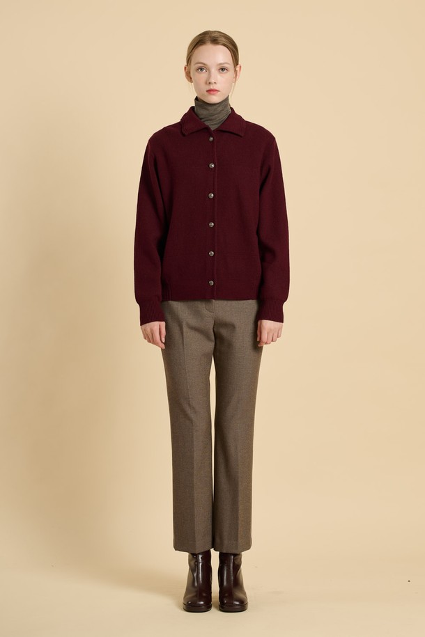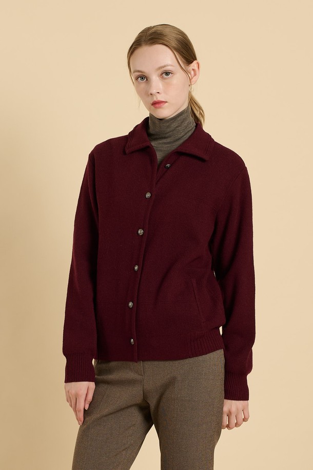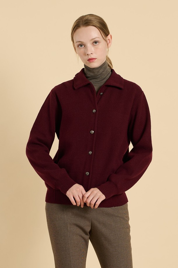 [25FA] 하이넥 카라 니트 가디건 - BURGUNDY B5F8K18265