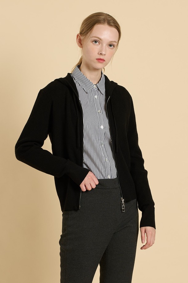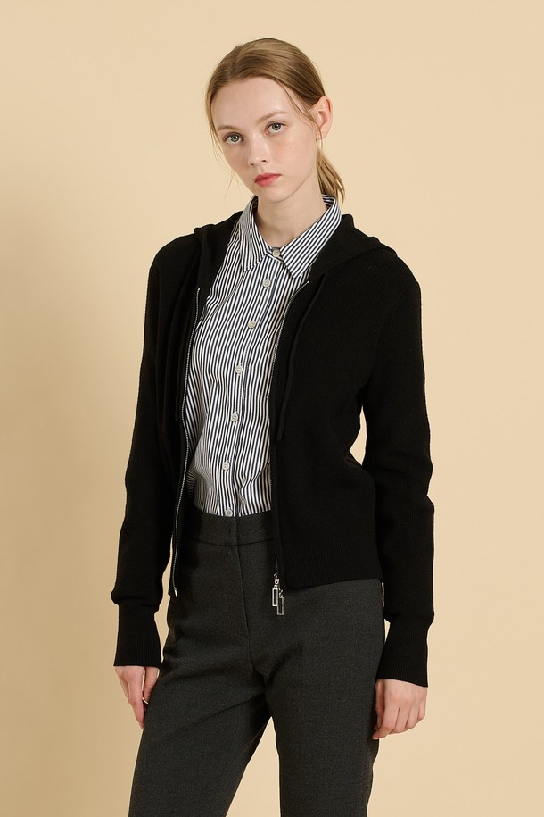 [25WT] 후드 니트 투웨이 집업 - BLACK B5W9G17099