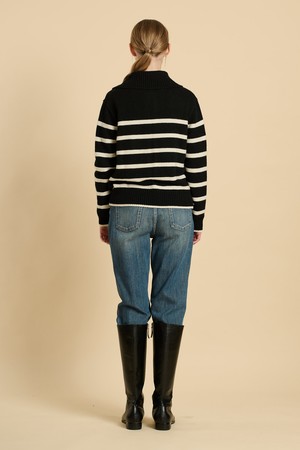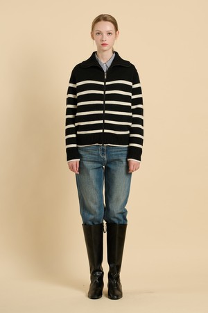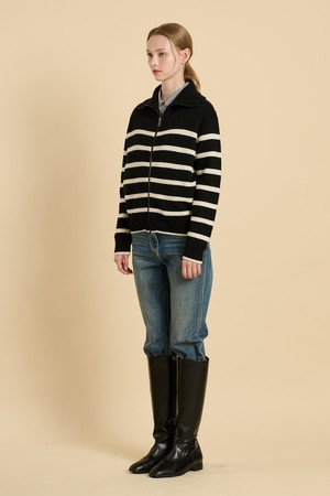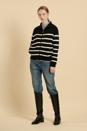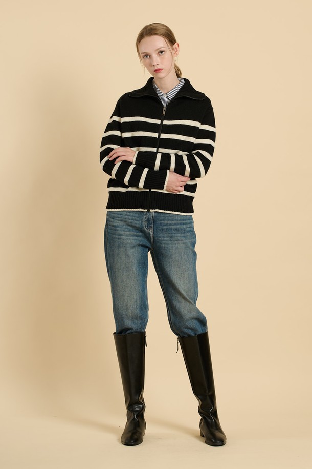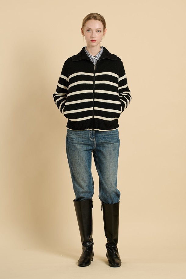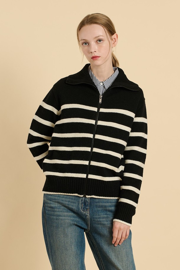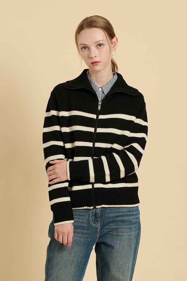 [25WT] 스트라이프 니트 집업 - BLACK B5W9K17199