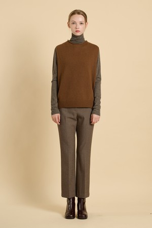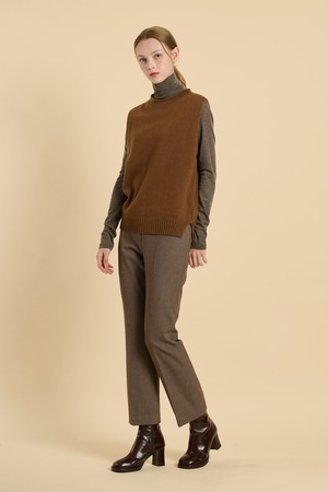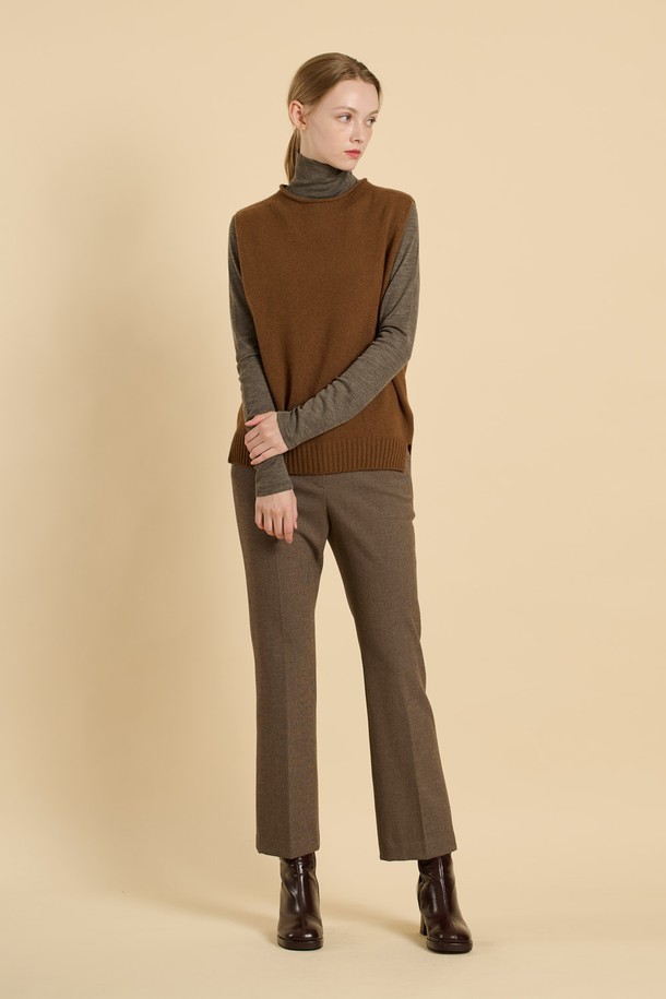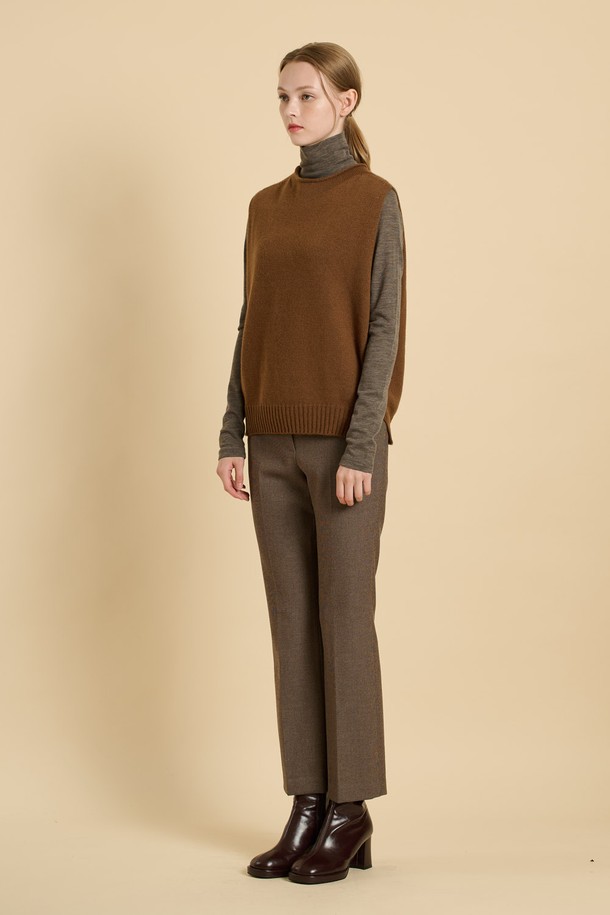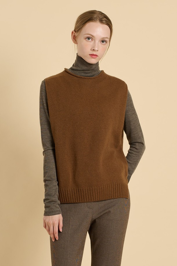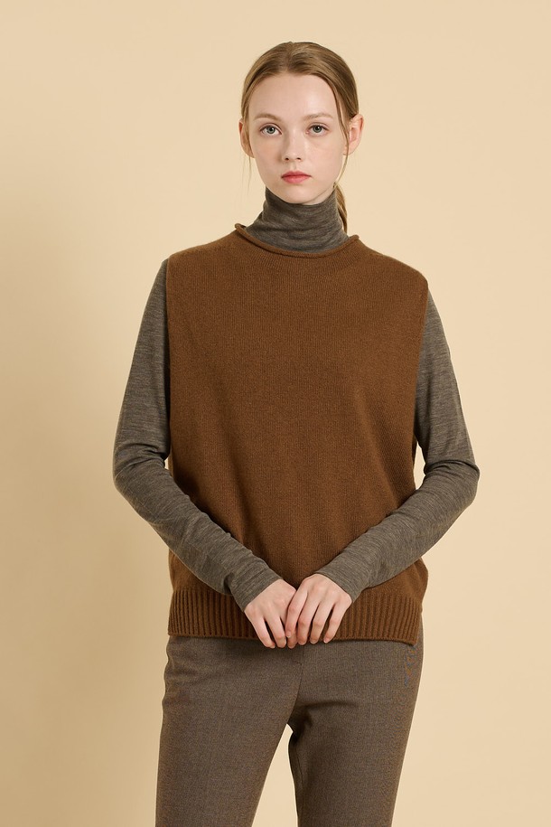 [25WT] 넥라인 니트 베스트 - CAMEL B5W9K57280