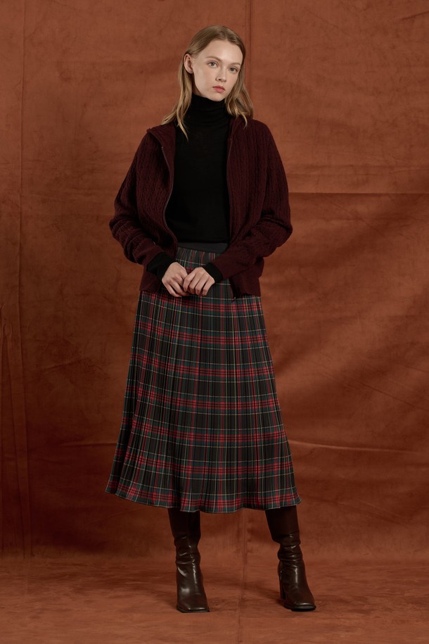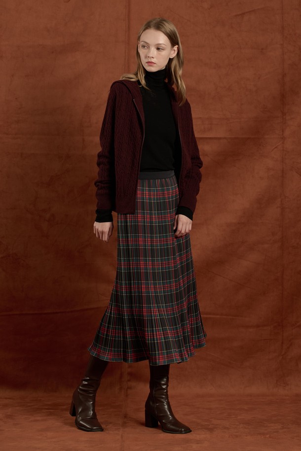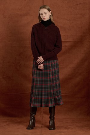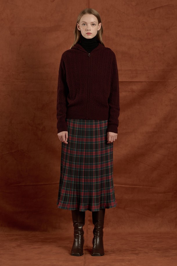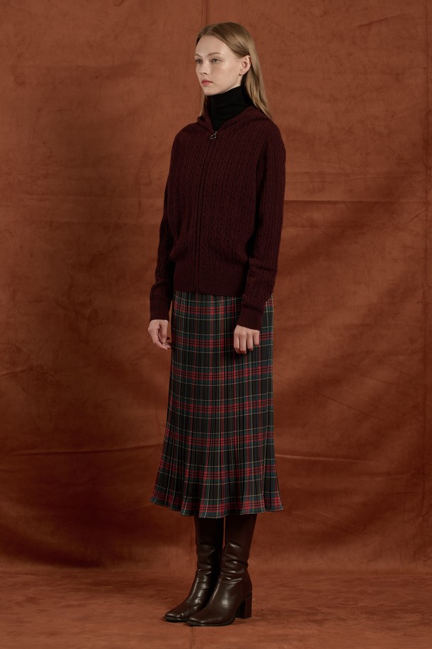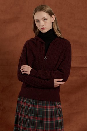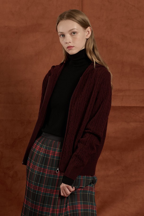 [25WT] 케이블 울 니트 후드 집업 - BURGUNDY B5W9K10665