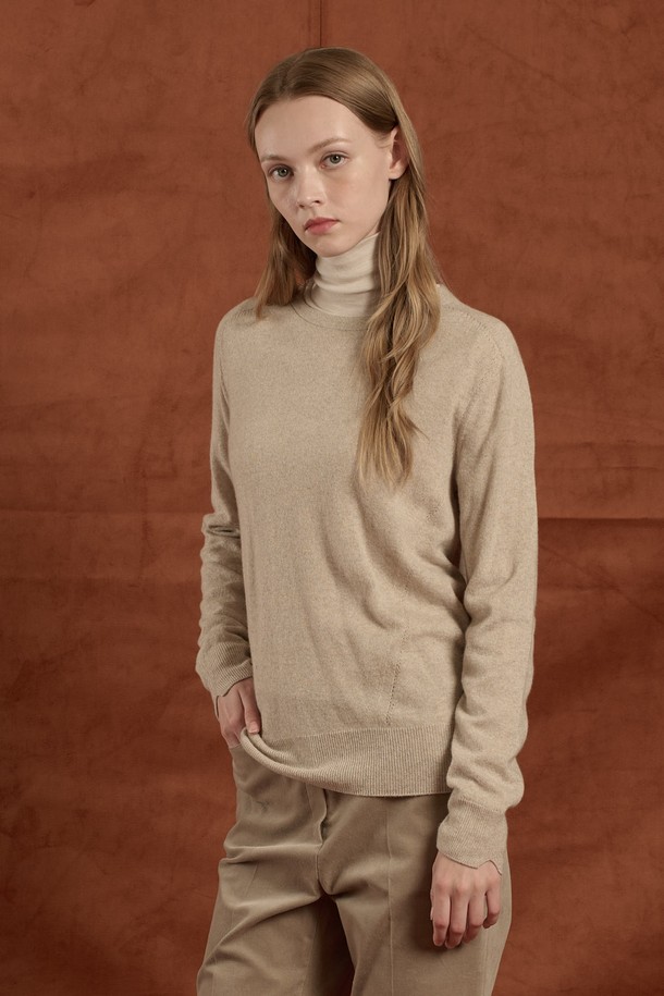[25WT] 라운드넥 홀가먼트 니트 풀오버 - LIGHT BEIGE B5W9K40171