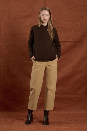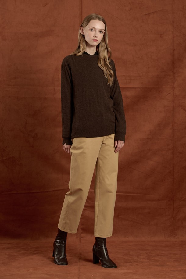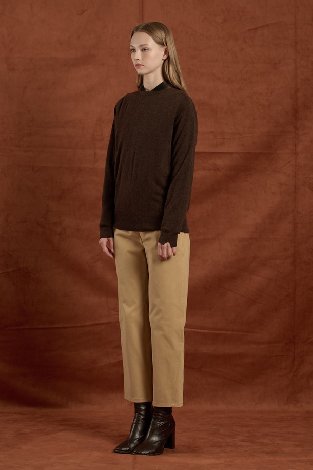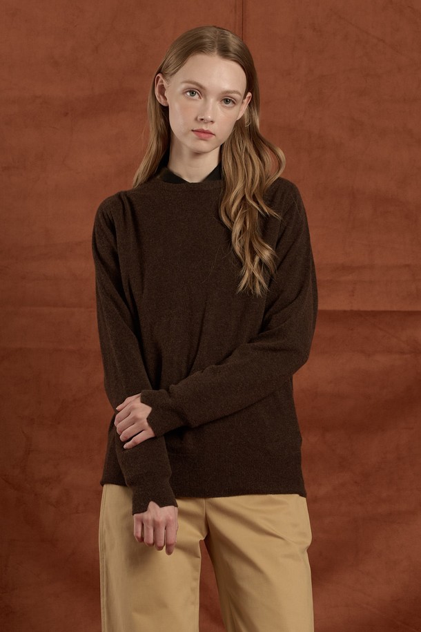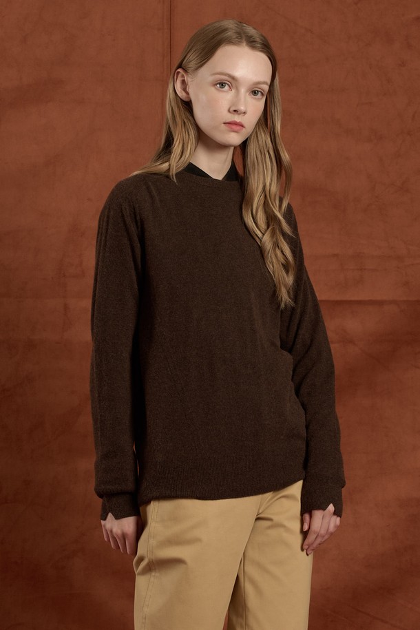[25WT] 라운드넥 홀가먼트 니트 풀오버 - BROWN B5W9K40174