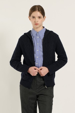 [25WT] 케이블 후드 집업 가디건 - NAVY B5D9K17255