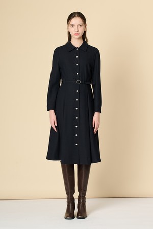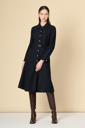 [25WT] 벨티드 플레어 원피스 - DARK NAVY B5D9O61056