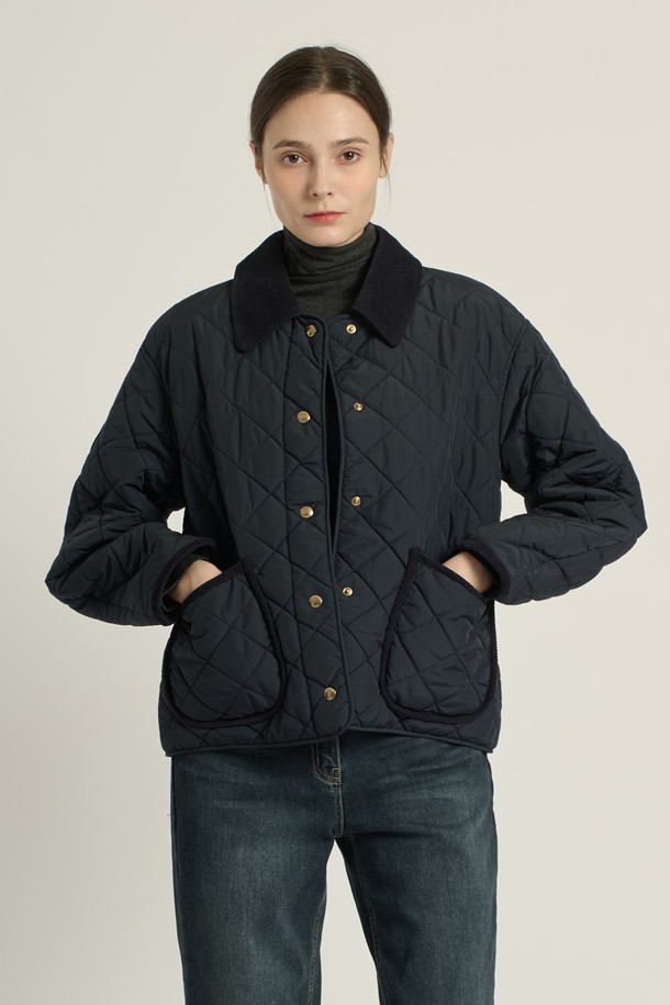 [25WT] 코듀로이 카라 퀼팅 - NAVY B5D9G17355