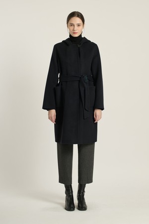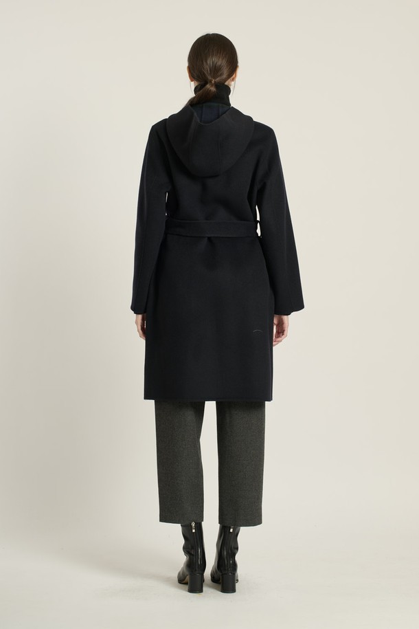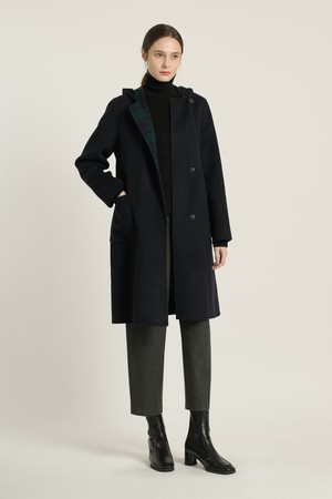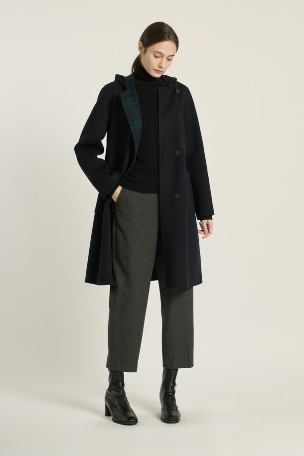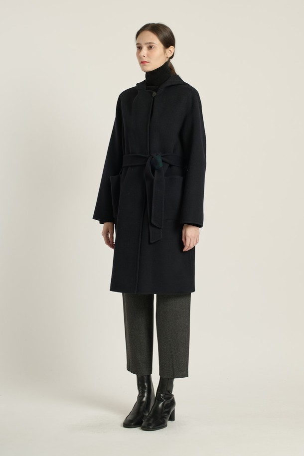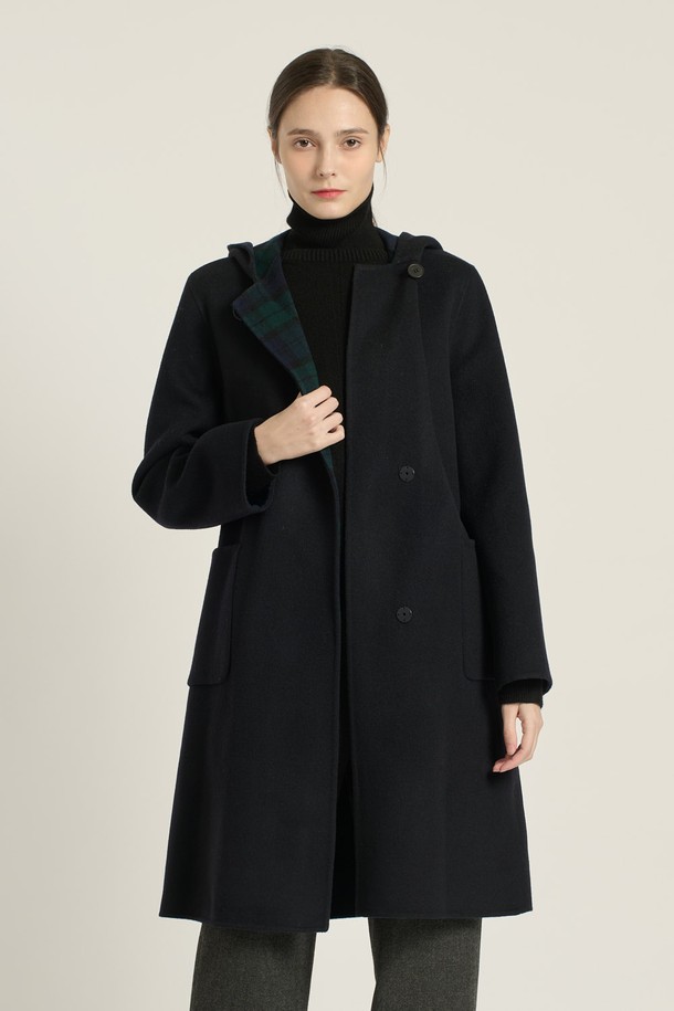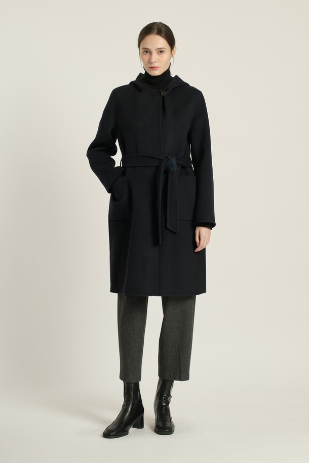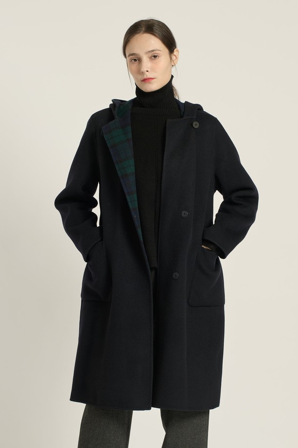 [25WT] 체크 후드 핸드메이드 코트 - DARK NAVY B5DAH82256