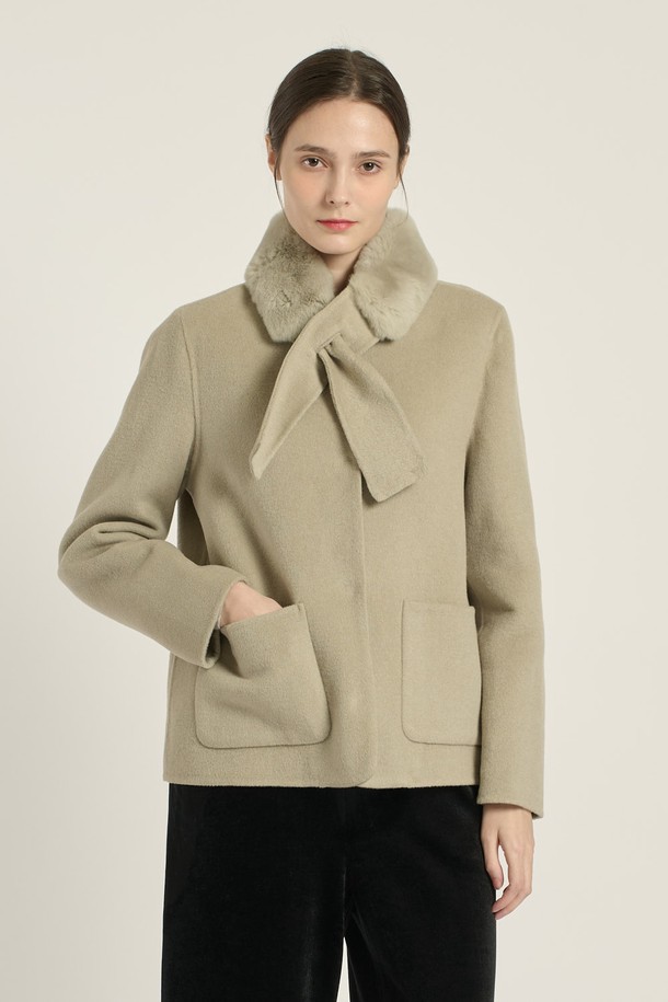[25WT] 싱글 탈부착 머플러 핸드메이드 코트 - MINT B5DAH82138