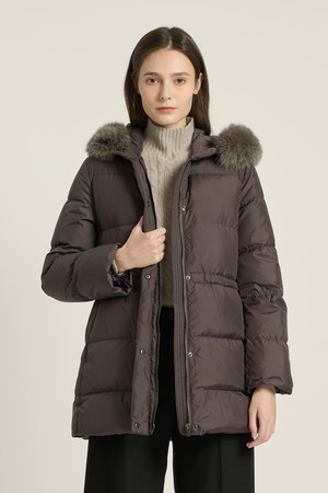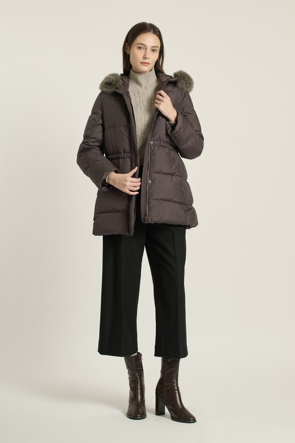 [25WT] 폭스퍼 후디 하프 구스다운 - BROWN B5DAF83774
