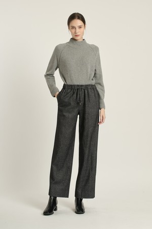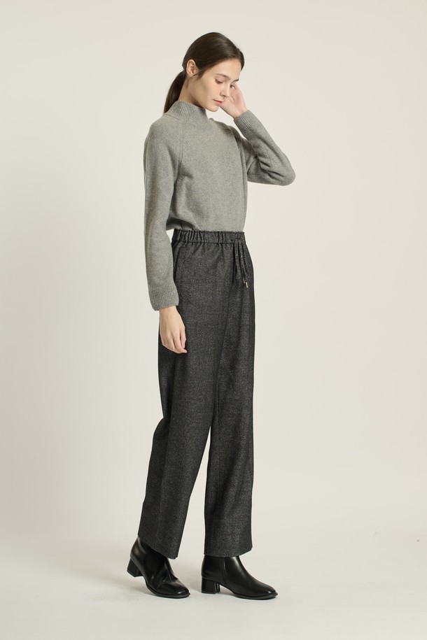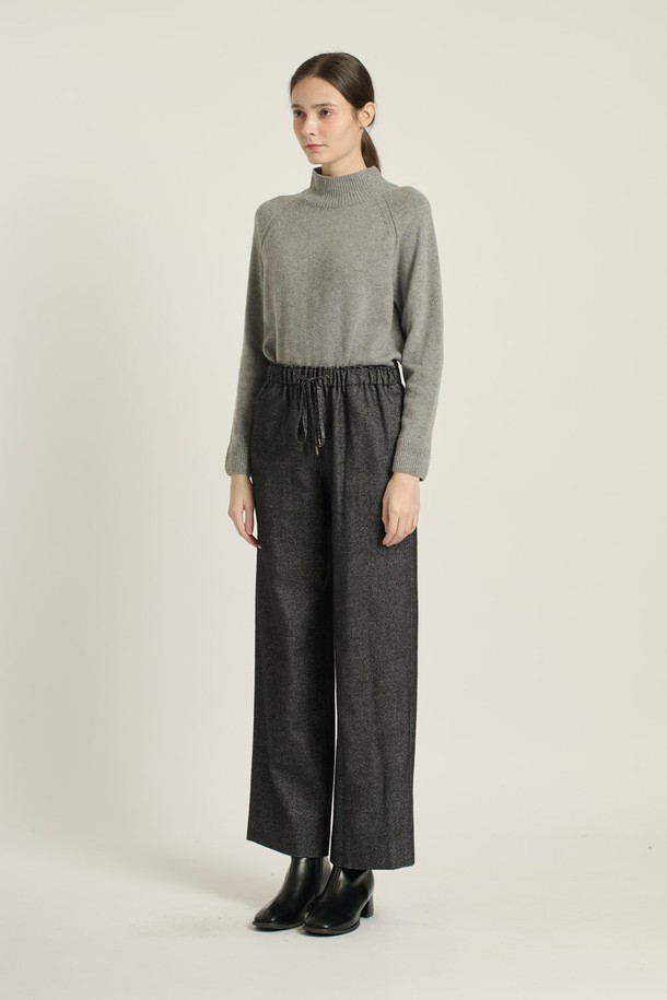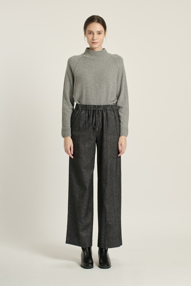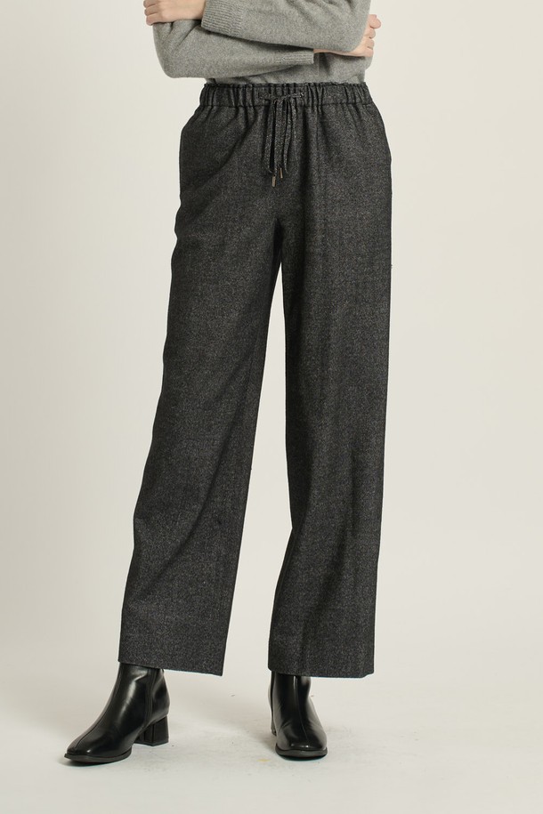 [25WT] 스트링 밴딩 와이드 팬츠 - BLACK B5D9P30699