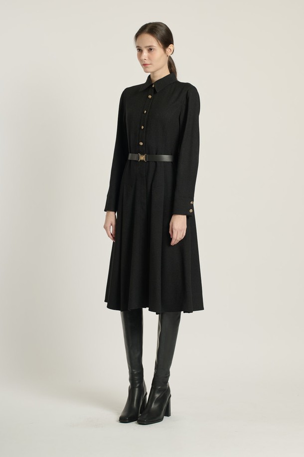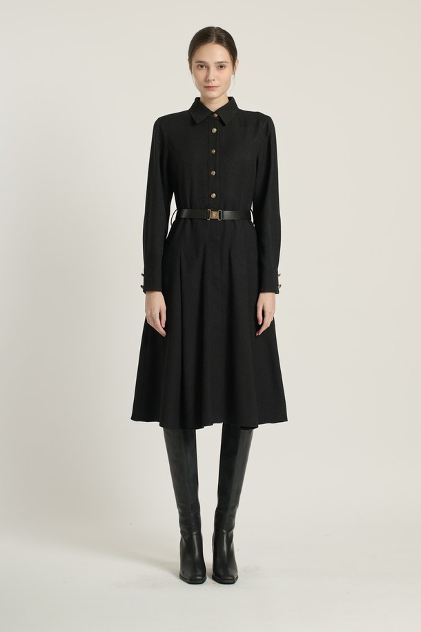 [25WT] 버튼 포인트 벨티드 원피스 - BLACK B5D9O60599