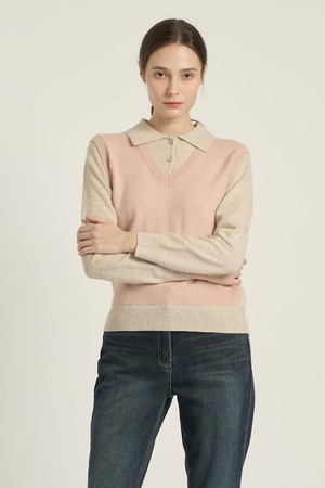 [25WT] 레이어드 카라 풀오버 - LIGHT BEIGE B5DAK41271