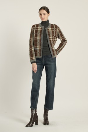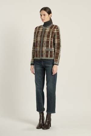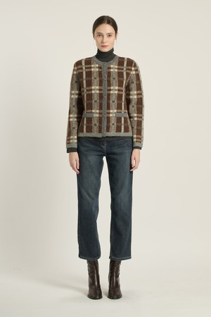[25WT] 헤어리 체크 가디건 - BROWN B5DAK12174