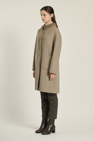 [25WT] 밍크카라 핸드메이드 코트 - DARK BEIGE B5DAH83273