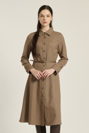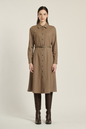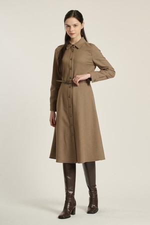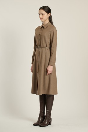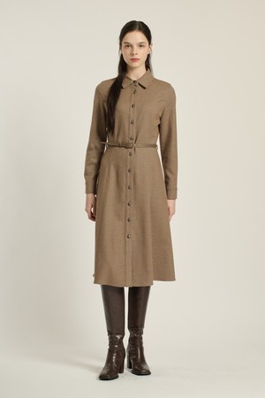 [25WT] 셔츠 카라 벨티드 원피스 - M BEIGE B5DAO62172