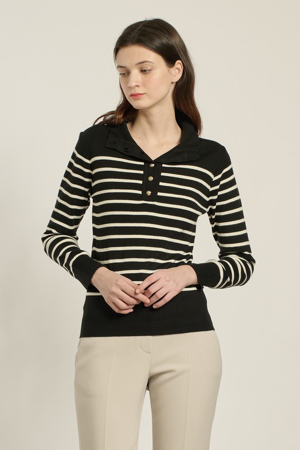 [26SP] 스트라이프 하이넥 풀오버 - BLACK B6A1K47899