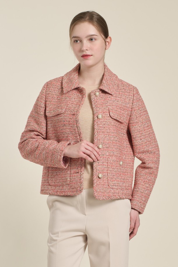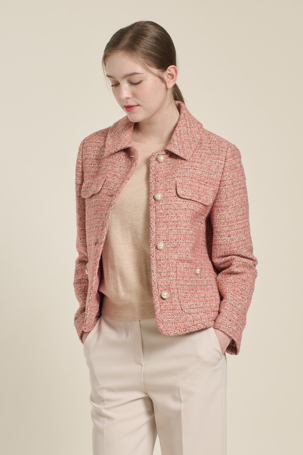 [26SP] 트위드 텍스처 믹스 자켓 - PINK B6A1J10222