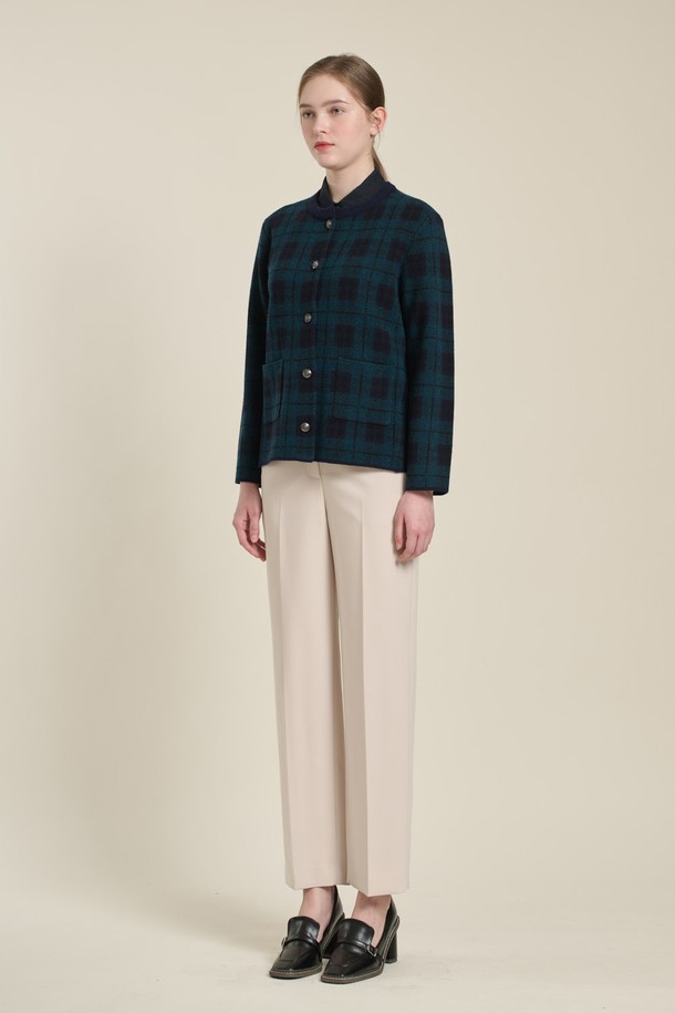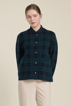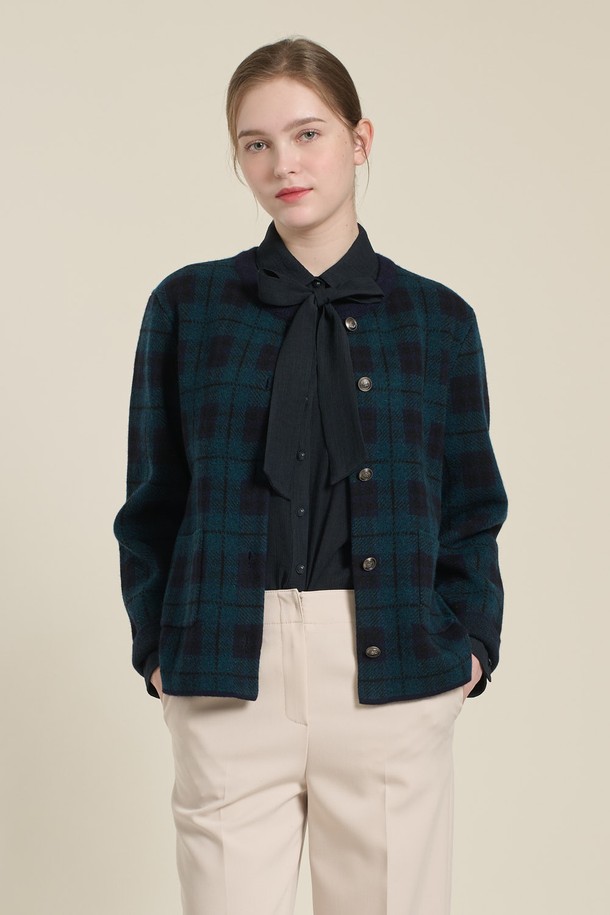 [26SP] 체크 자카드 니트 자켓 - DARK GREEN B6A1K10243