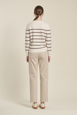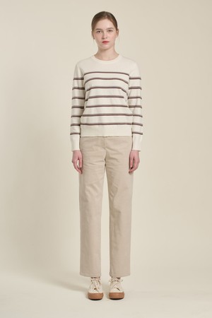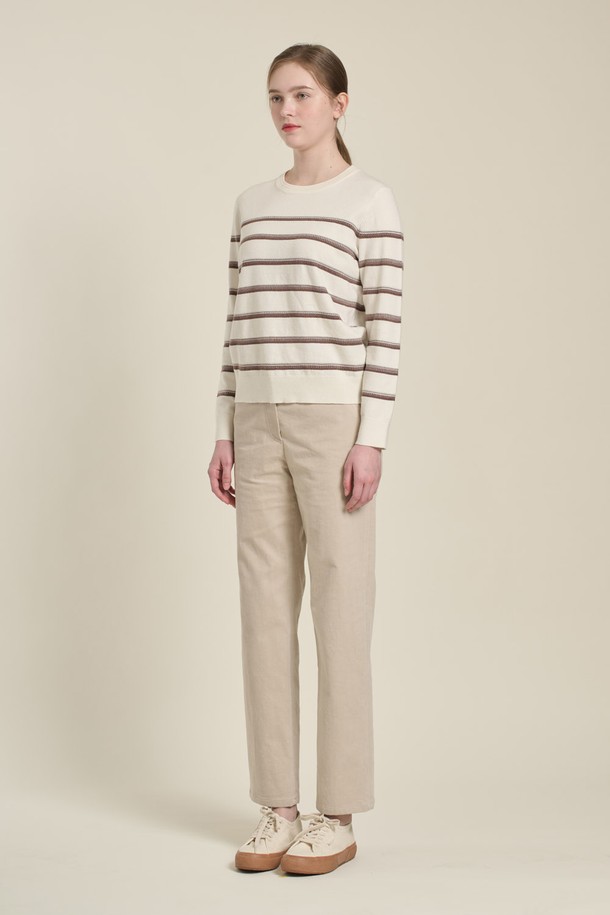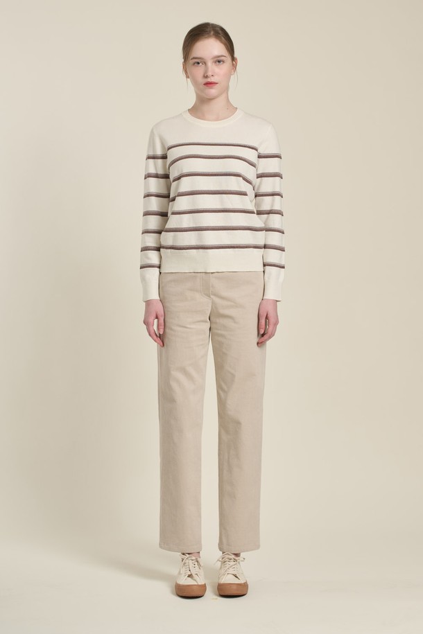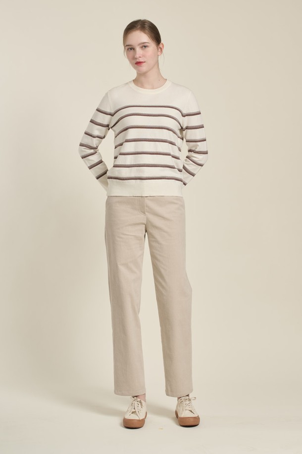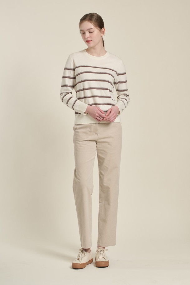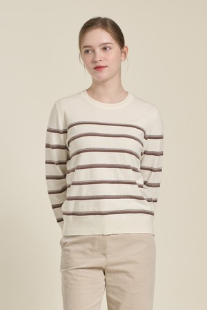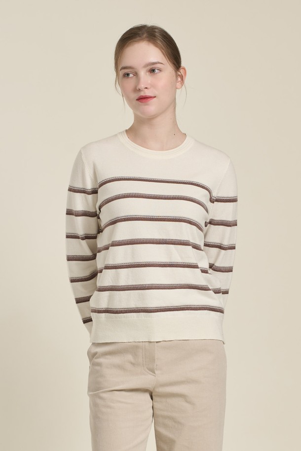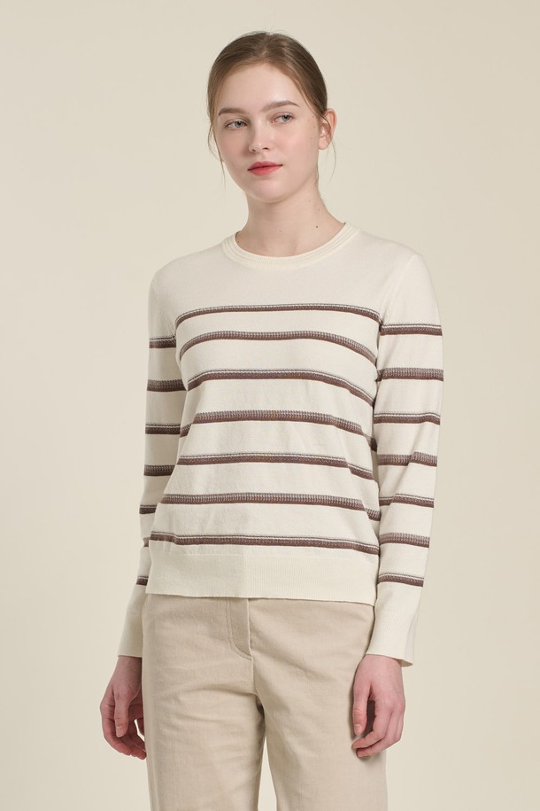 [26SP] 배색 스트라이프 니트 풀오버 - M BROWN B6A1K47179