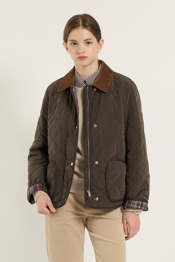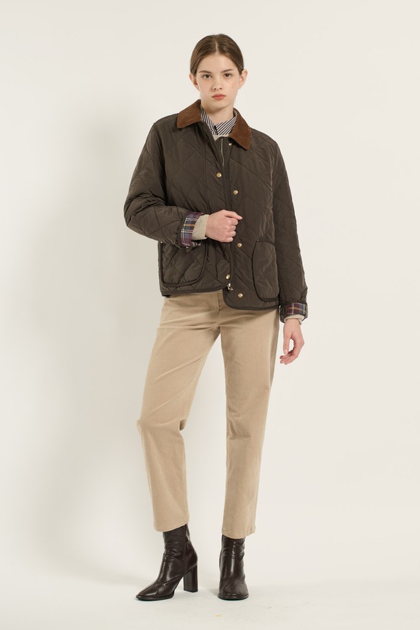 [25WT] 코듀로이카라 박스핏 퀼팅 자켓 - DARK BROWN B6A1R16075